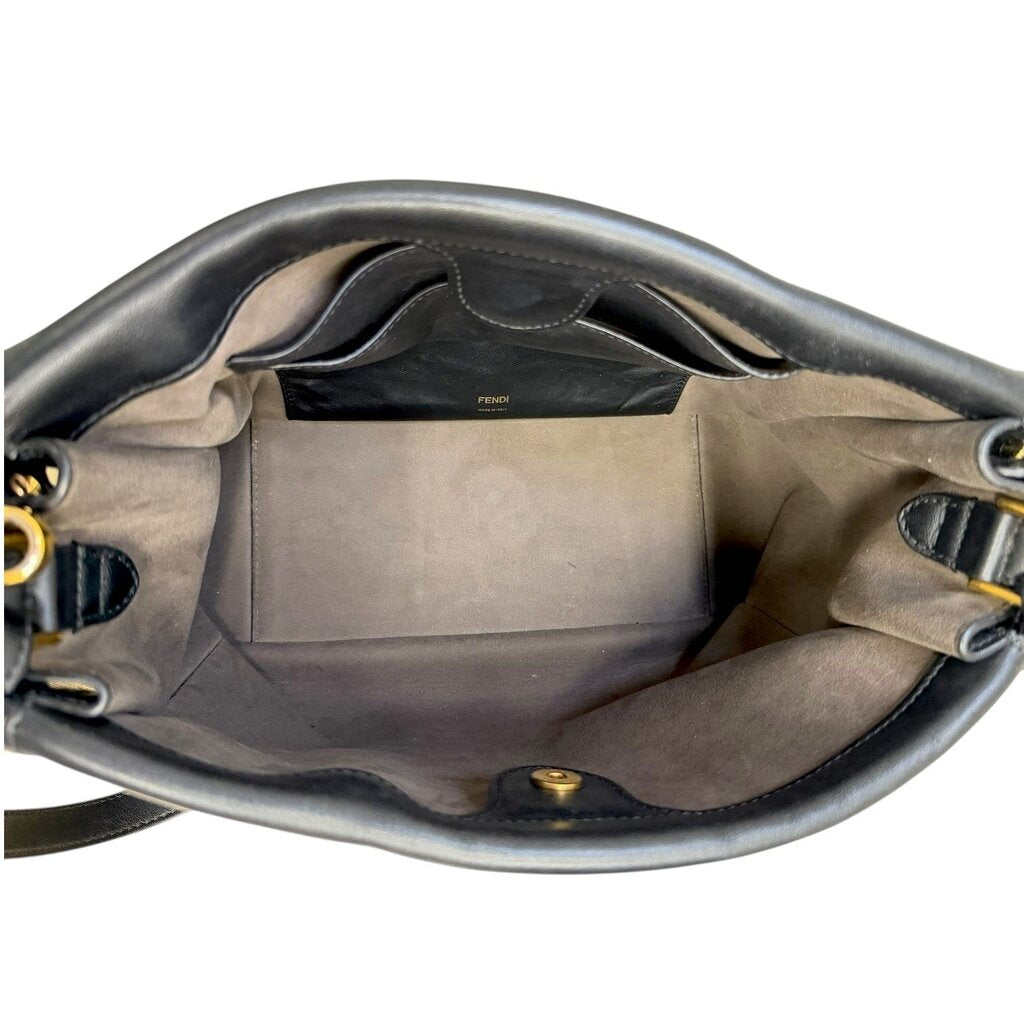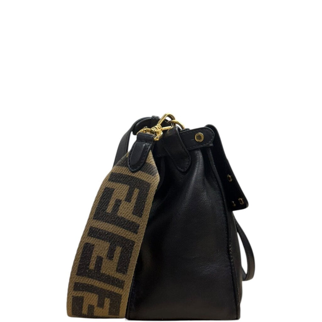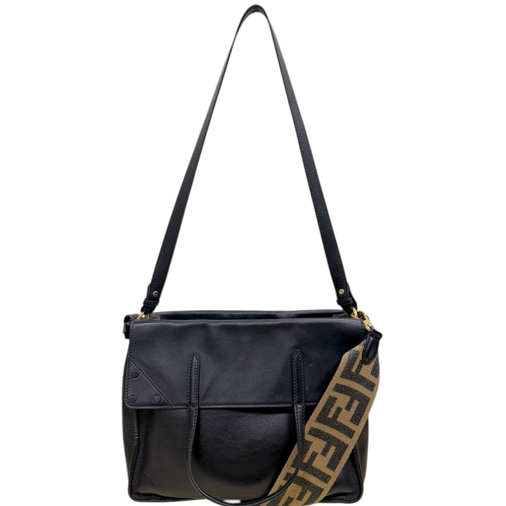 Fendi FF Flip Leather Shoulder Handbag Black