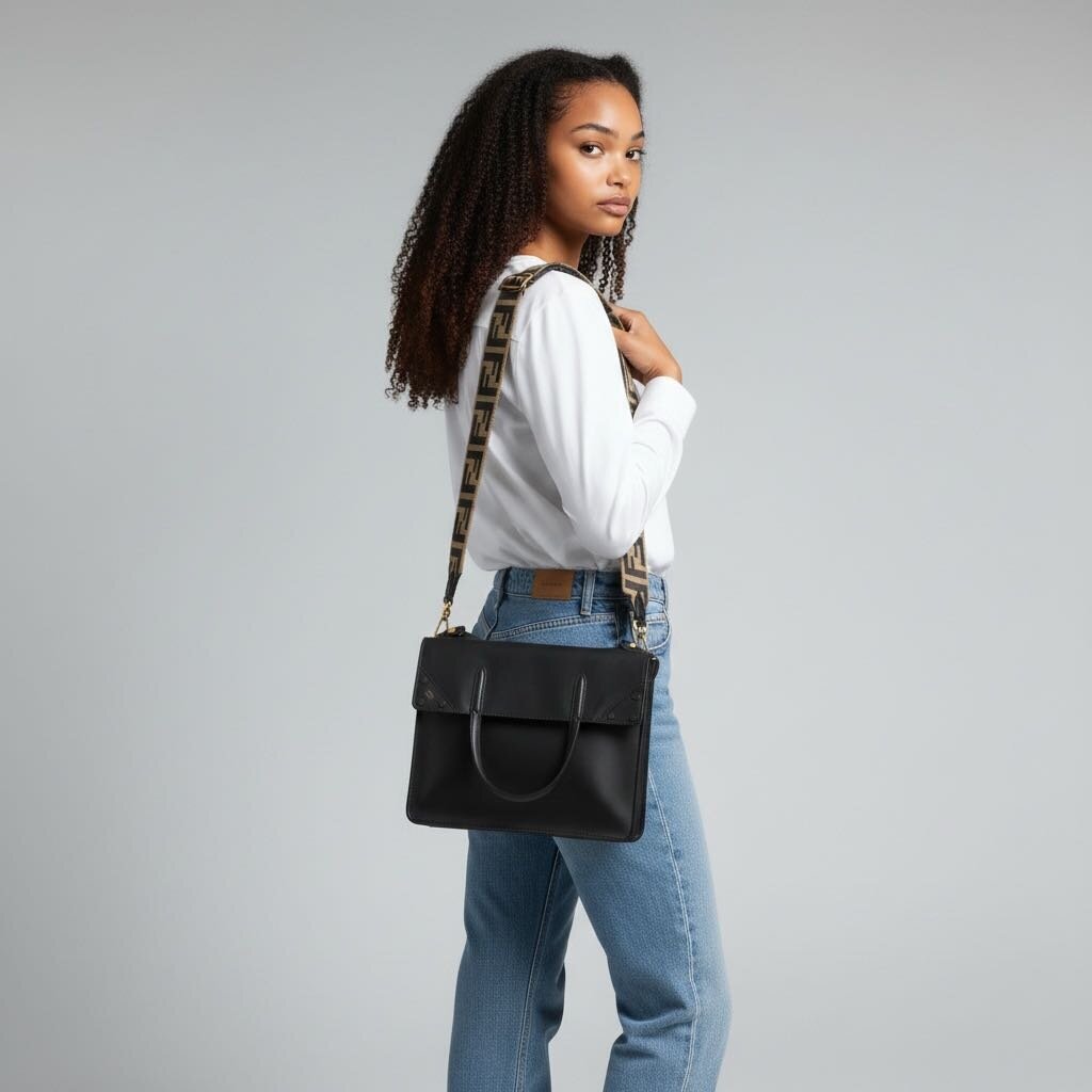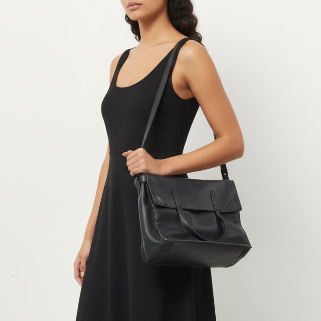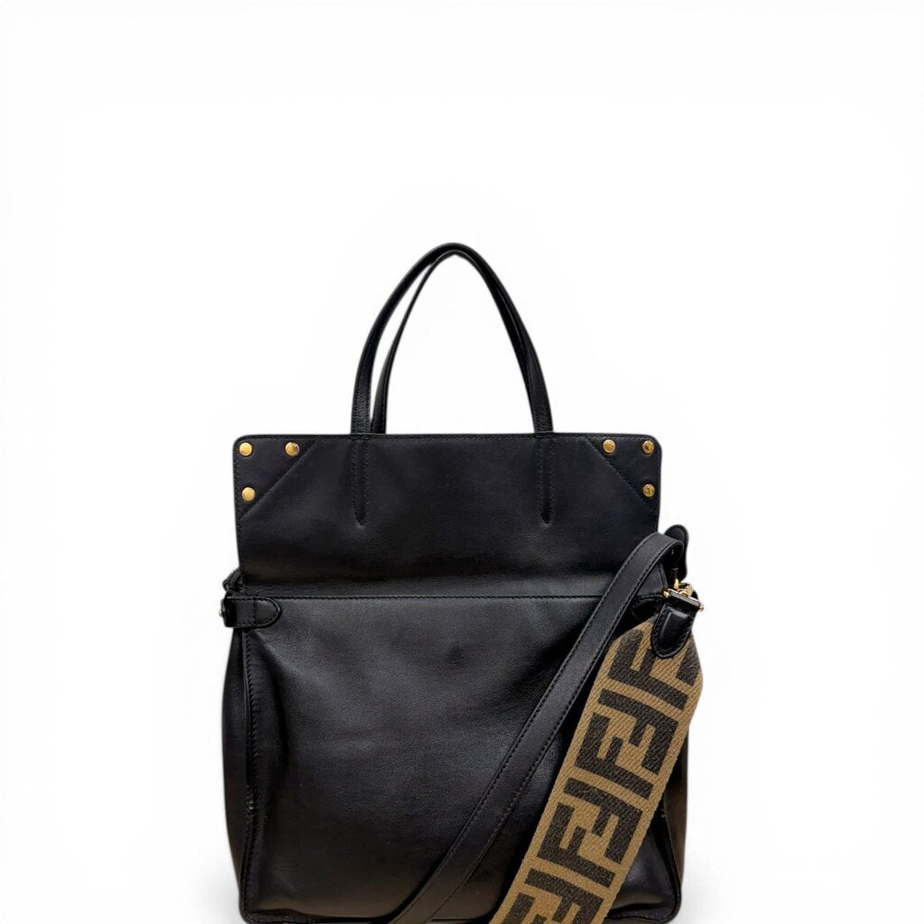 Fendi FF Flip Leather Shoulder Handbag Black