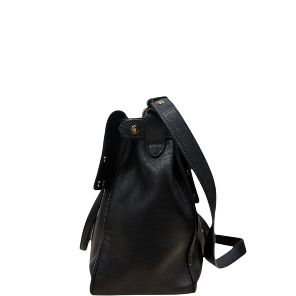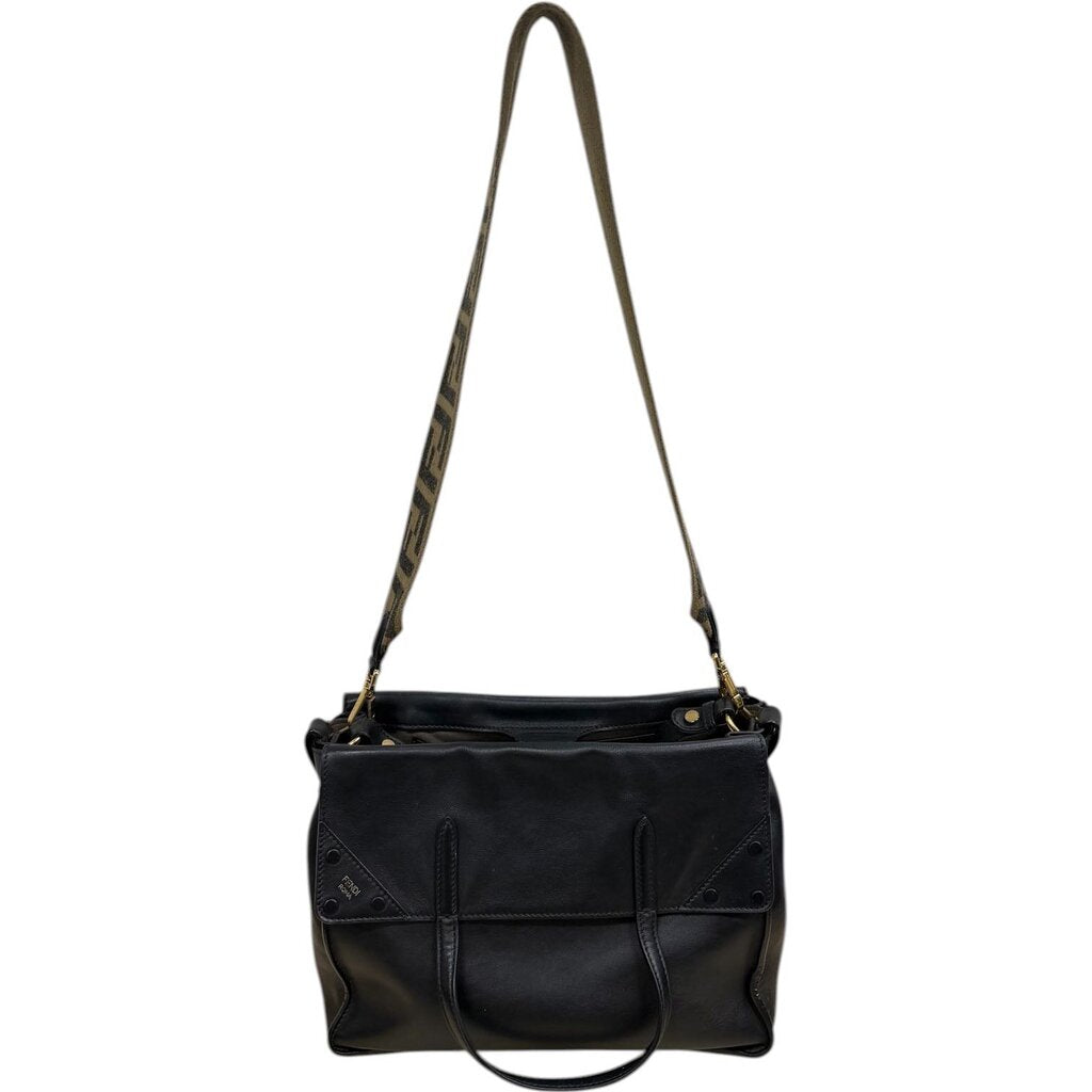 Fendi FF Flip Black Leather Shoulder Handbag Black