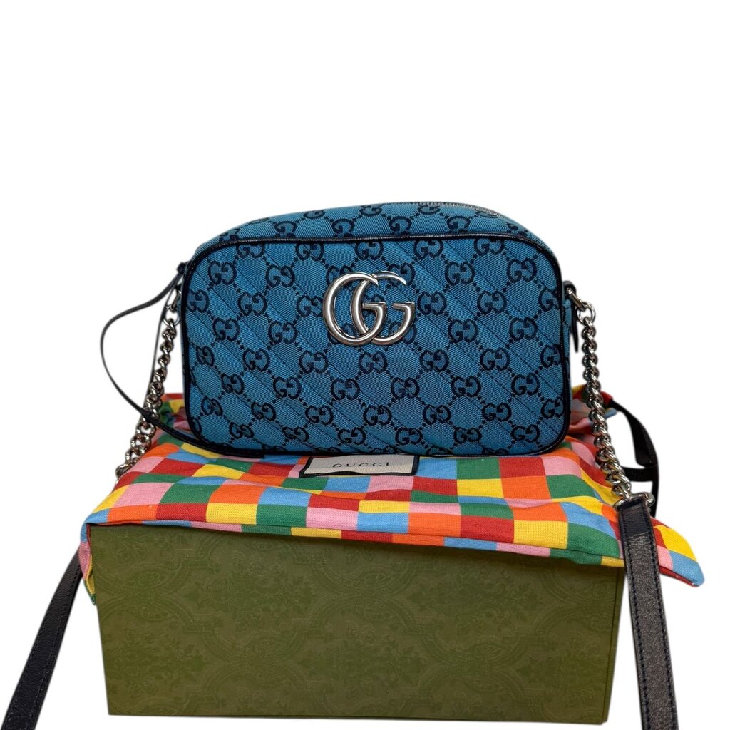 Gucci GG Marmont Diagonal Shoulder Crossbody Bag Blue Small