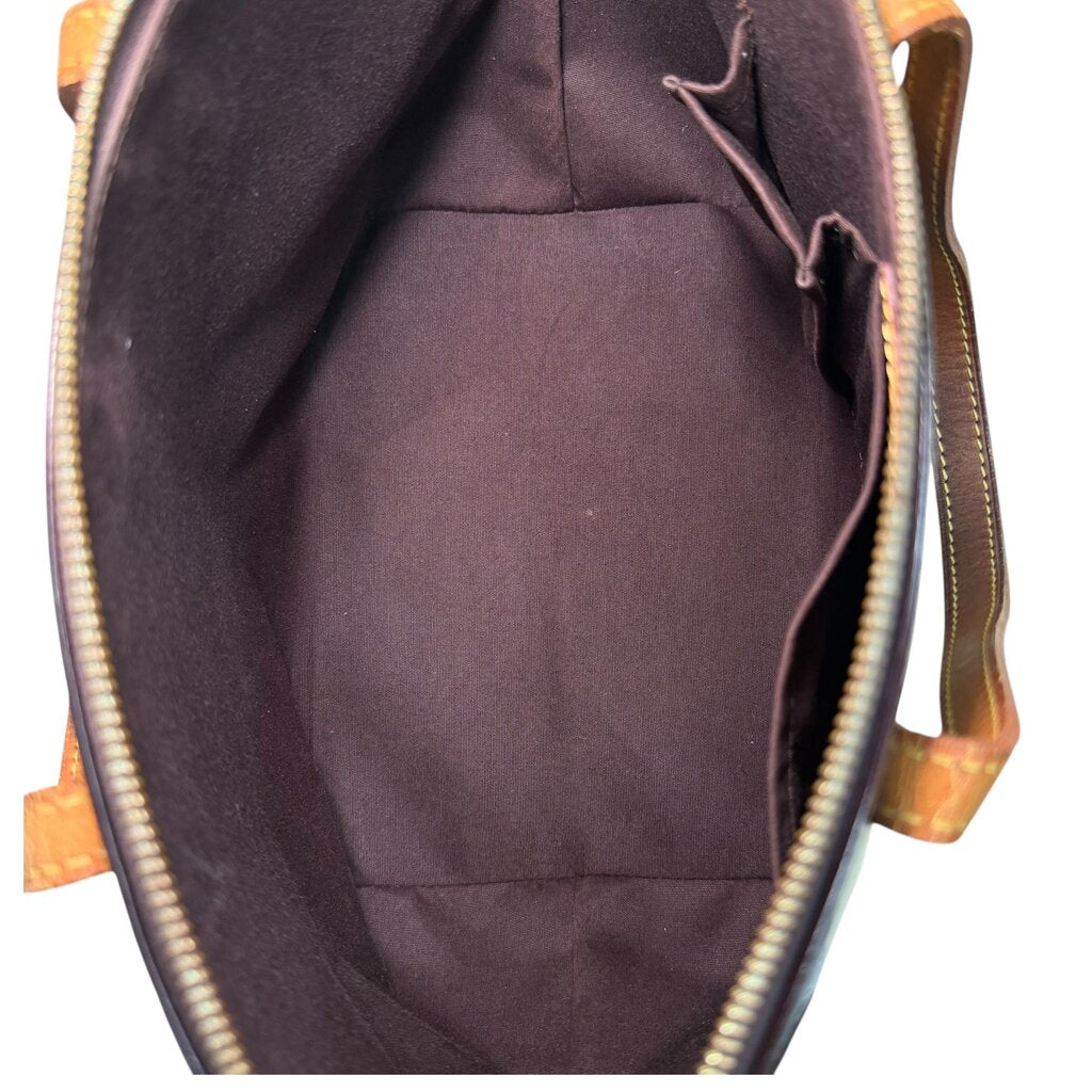 In fair condition. Significant wear to the handles. Creasing throughout the bag.