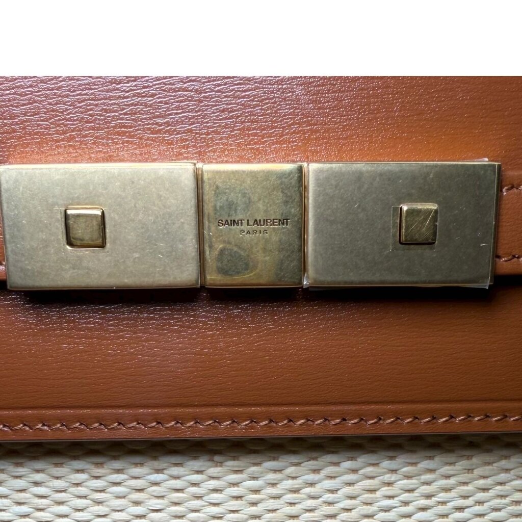 Saint Laurent YSL Manhattan Raffia And Leather Shoulder Bag Brown Medium