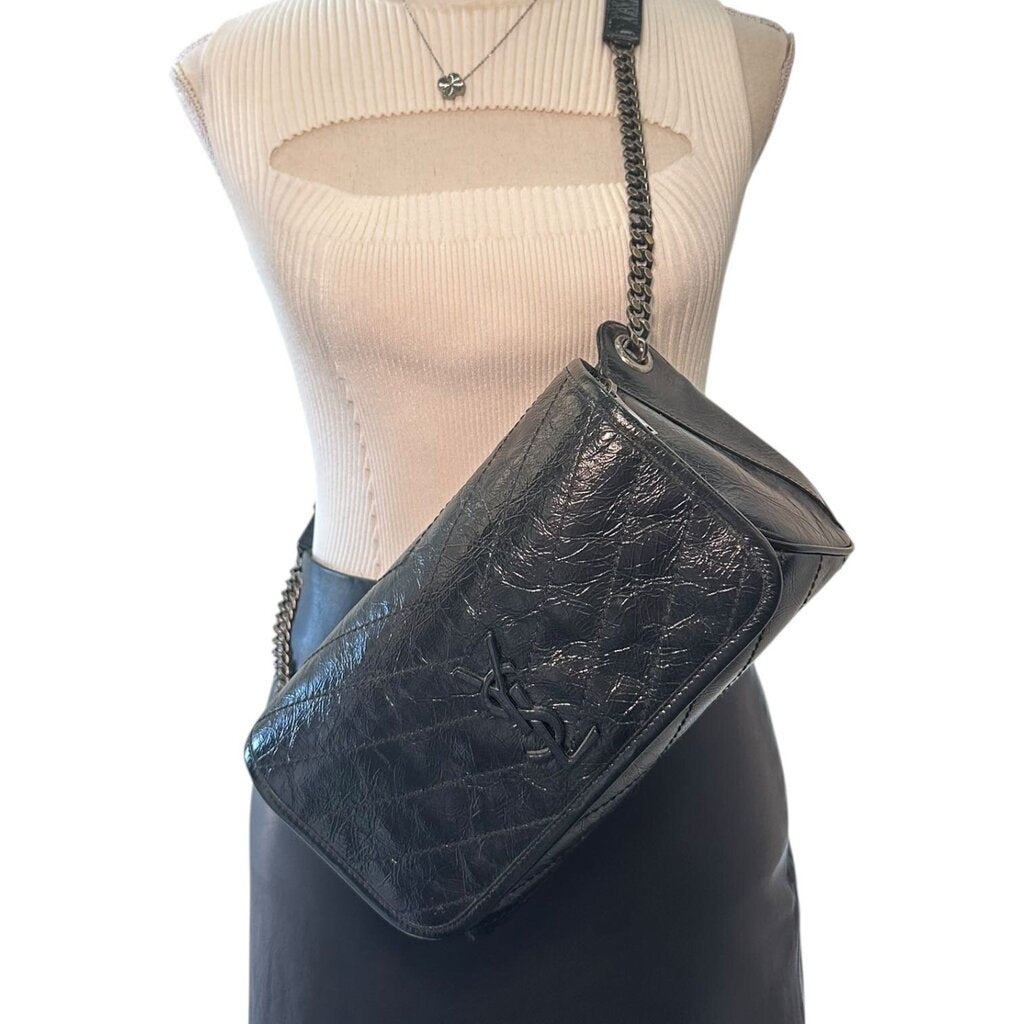 Saint Laurent YSL Niki Body Matelasse Crinkle Leather Chain Shoulder Bag