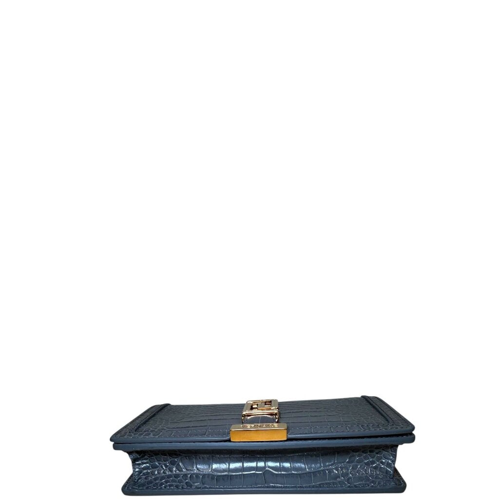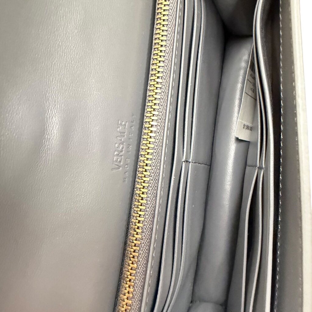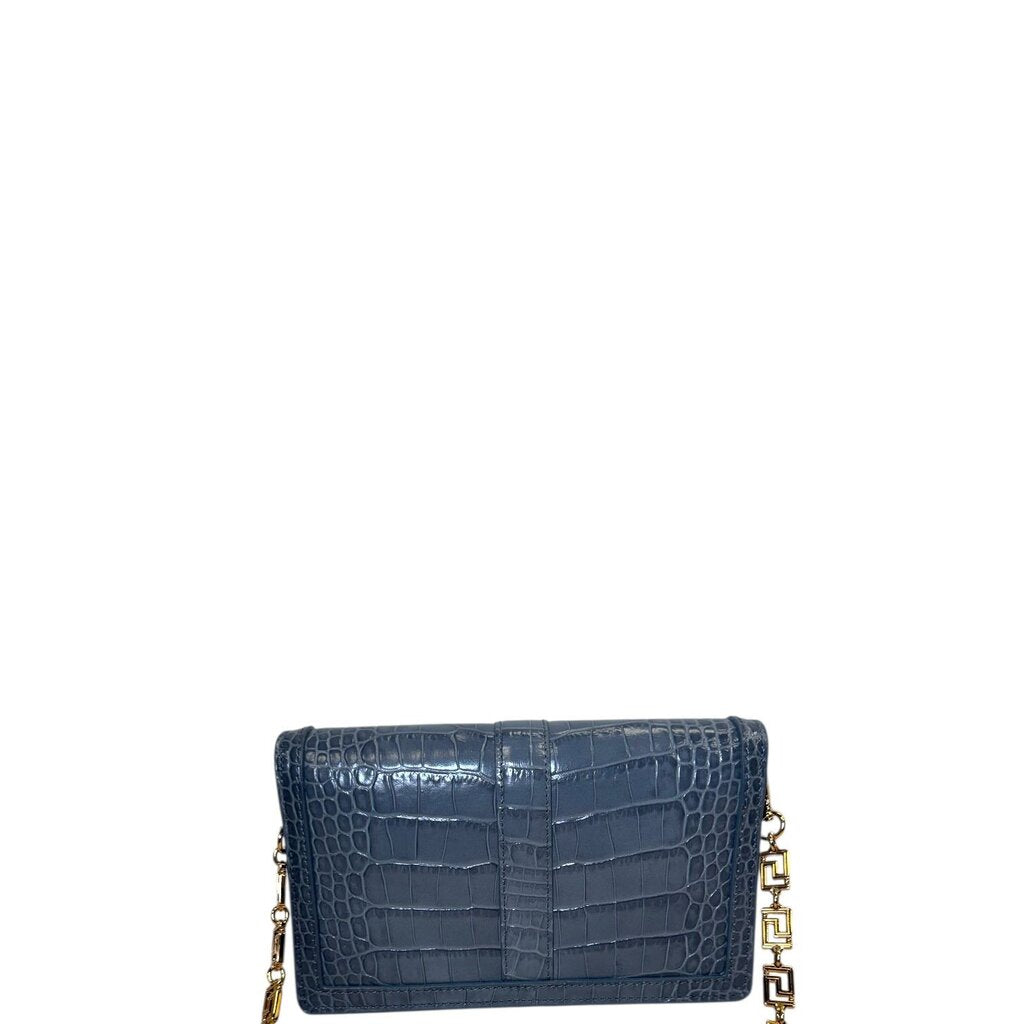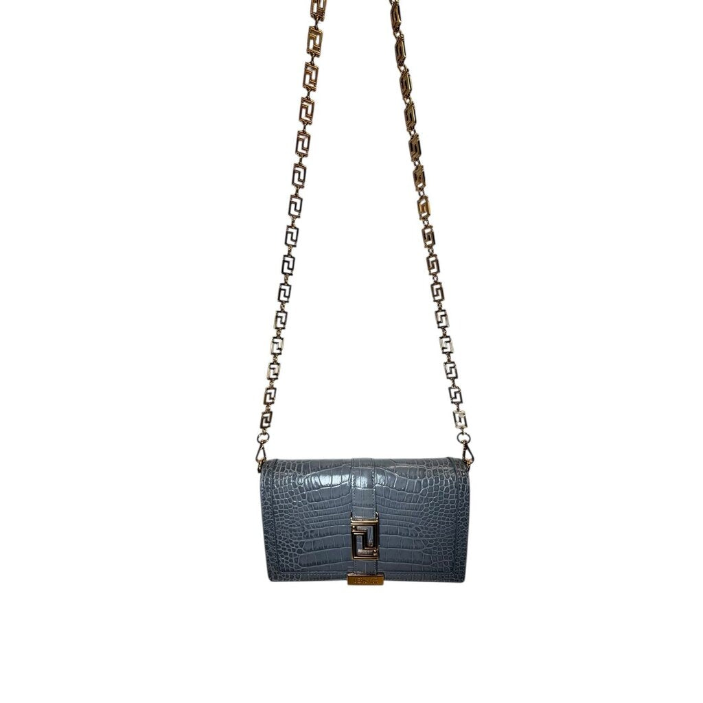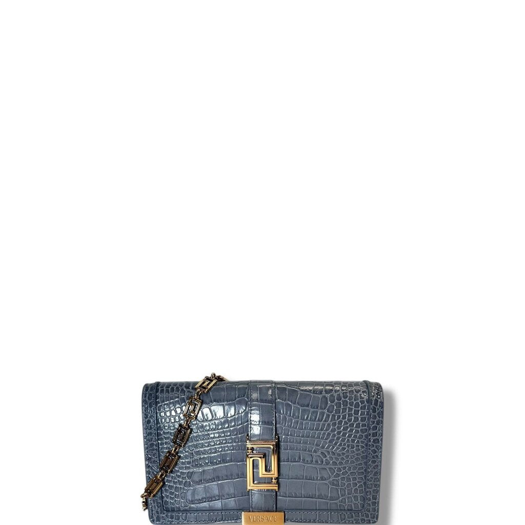 Versace Greca Goddess Croc-effect leather Wallet On Chain Gray