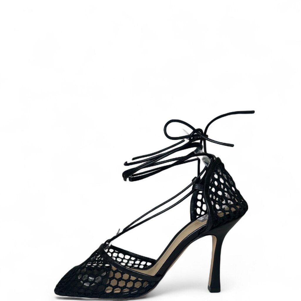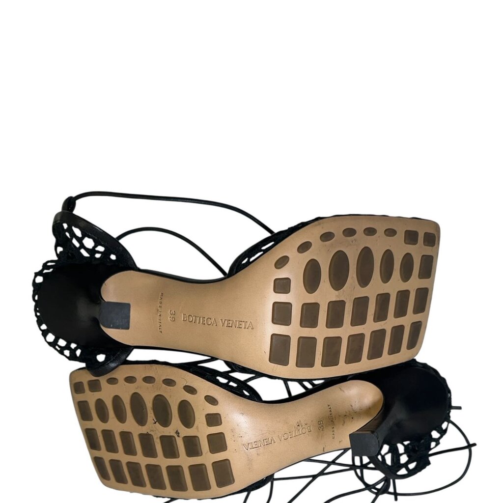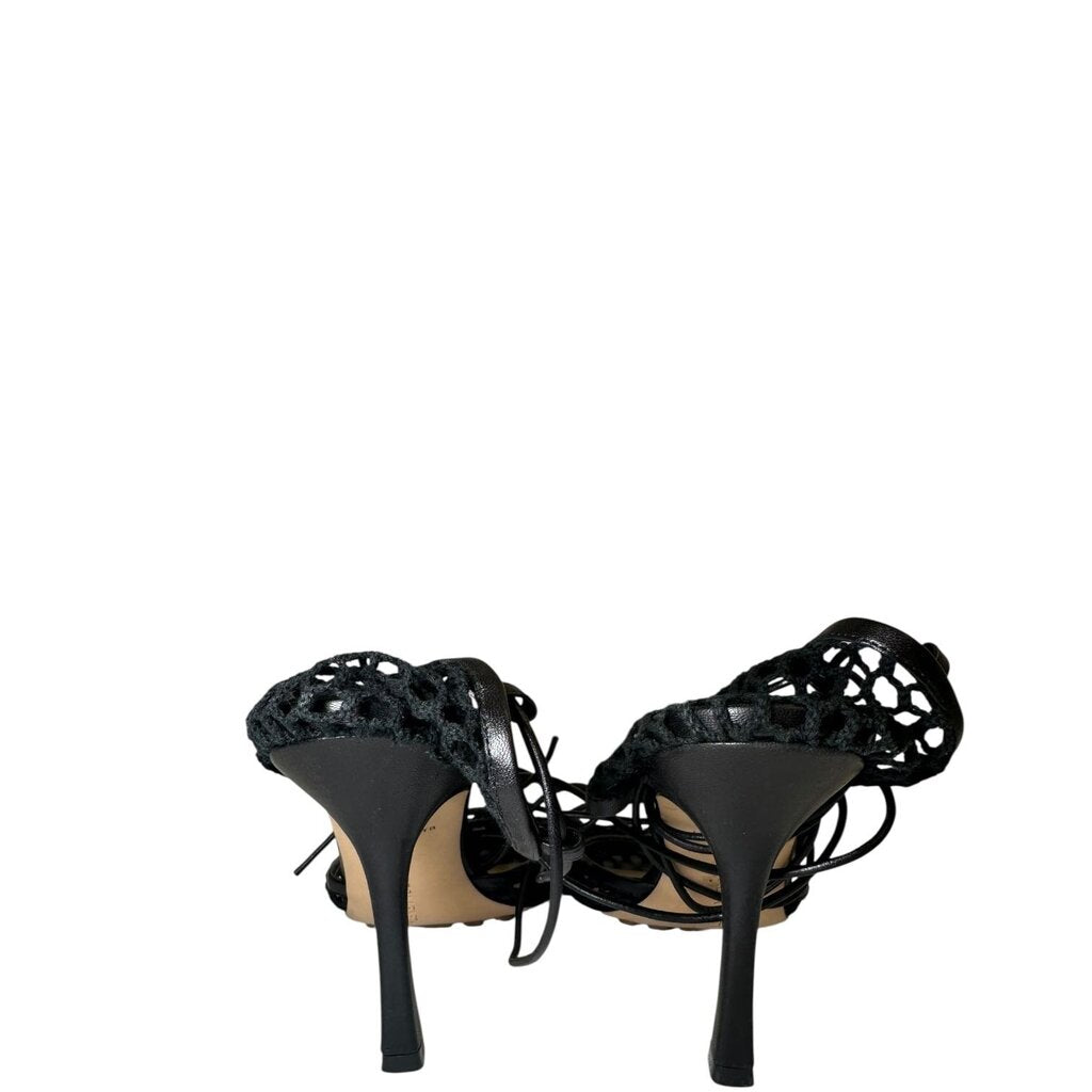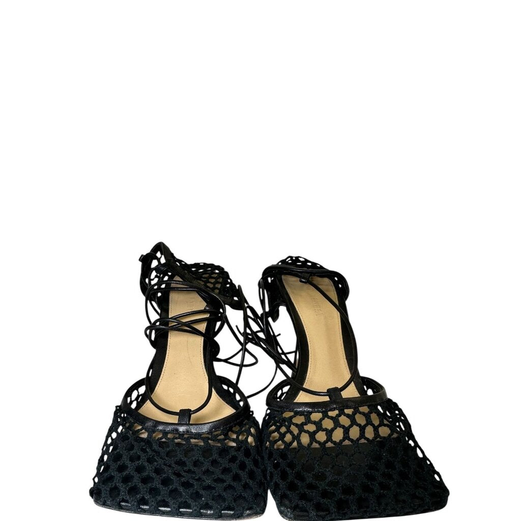 Bottega Veneta Stretch Square Toe Ankle Wrap Mesh Pumps Black 39
