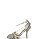 Bottega Veneta Stretch Square Toe Ankle Wrap Mesh Pumps Cream