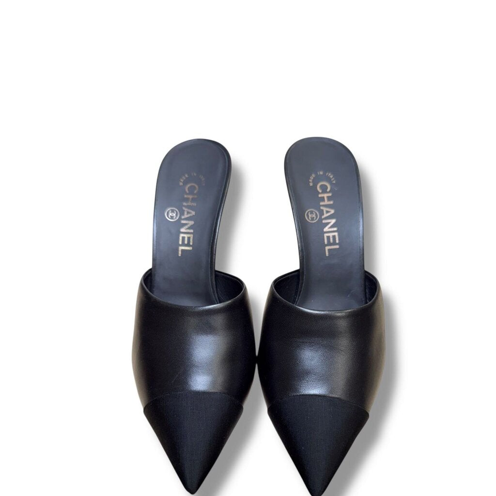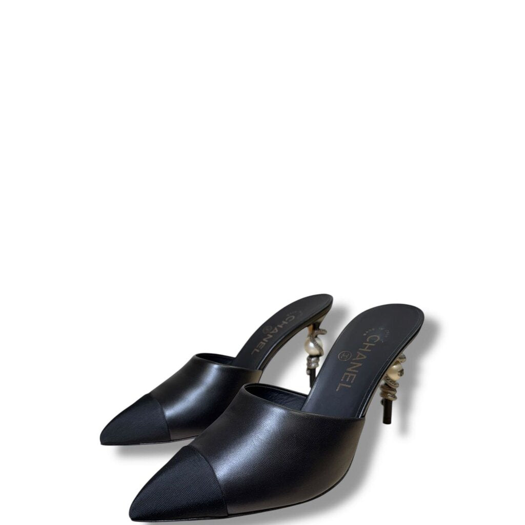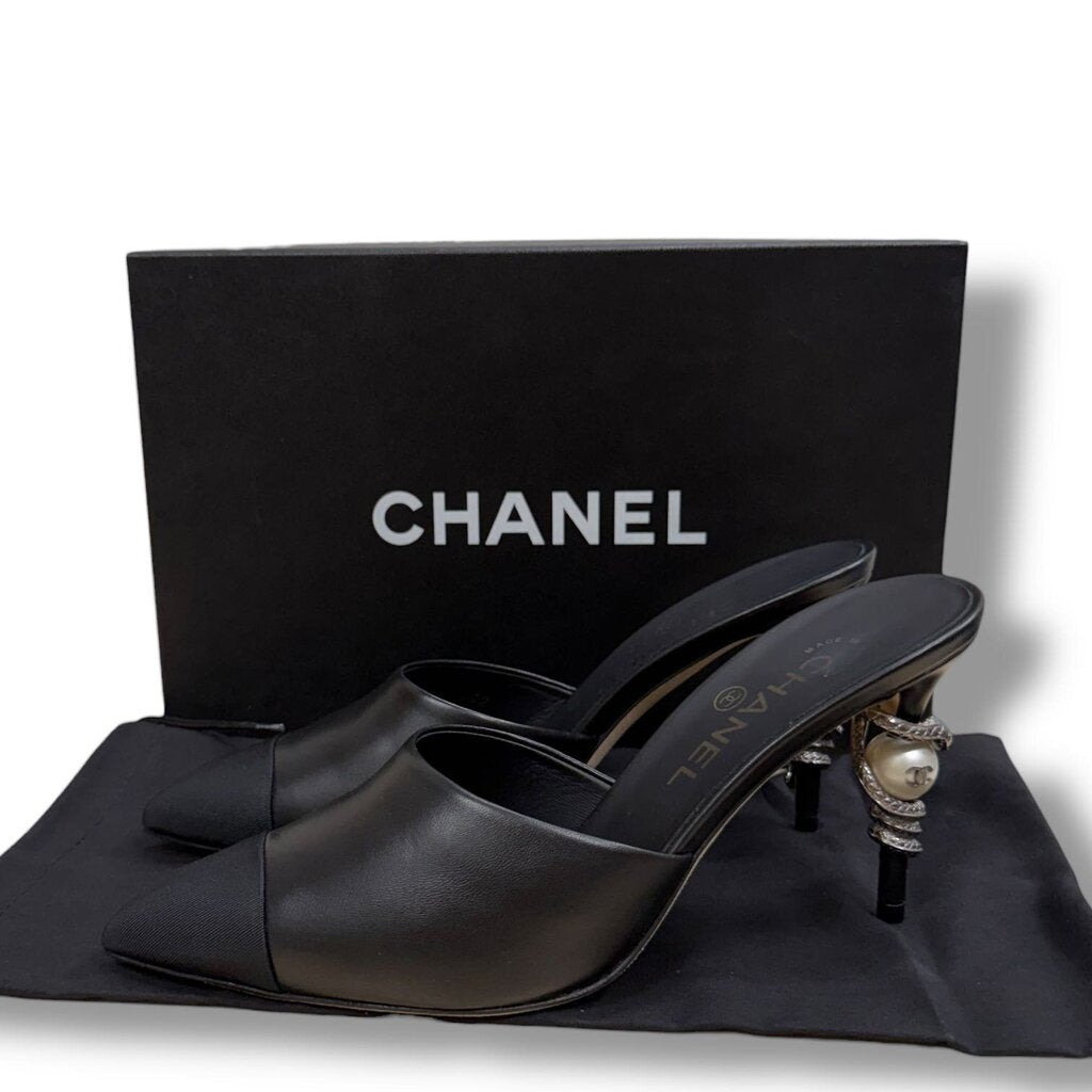 Chanel women Interlocking CC Logo Mules With Snake and Pearl Heel Black 37.5