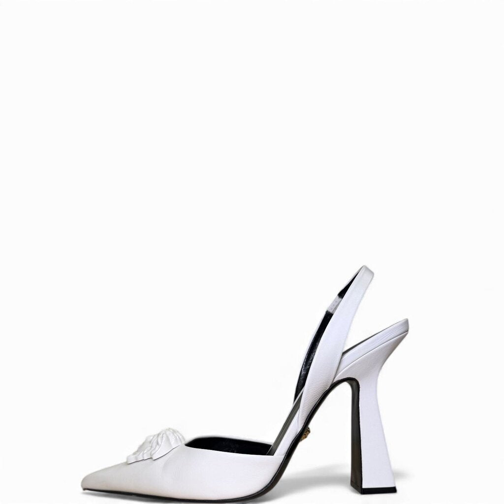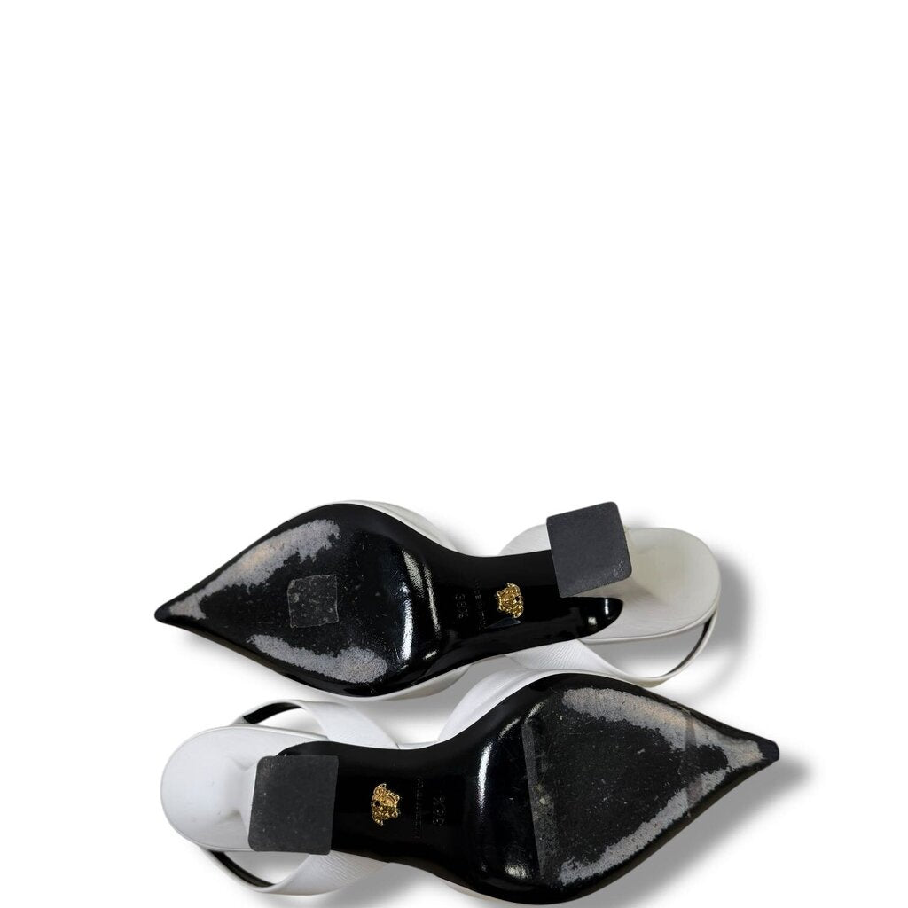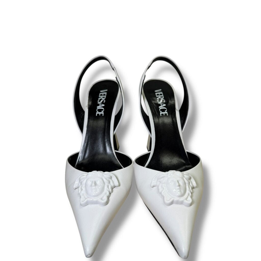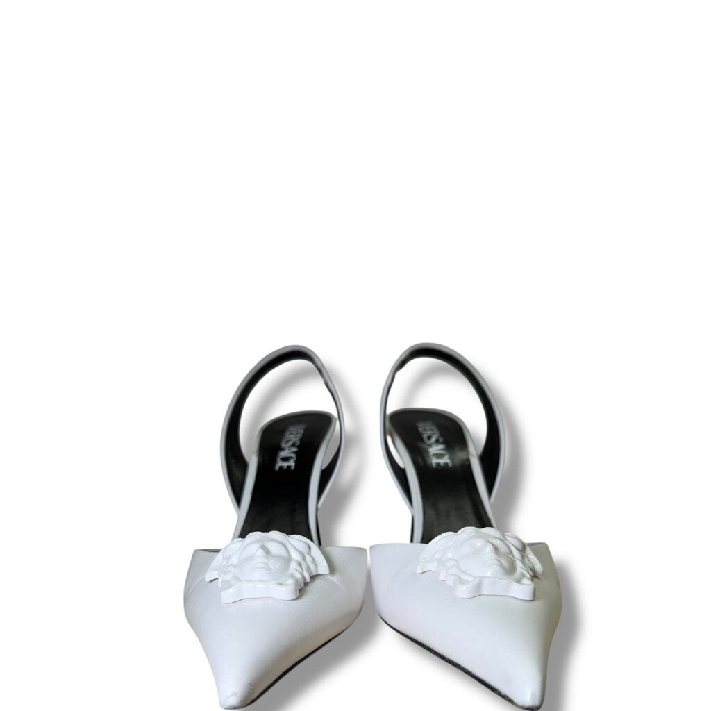 Versace La Medusa Leather Slingback Pump Heels White 38.5