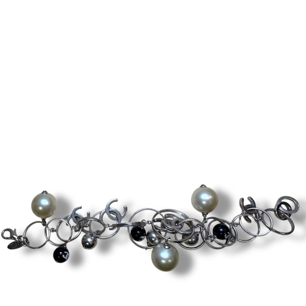 Chanel Multi-Ring Silver Interlocking Logo Pearl Bracelet Silver