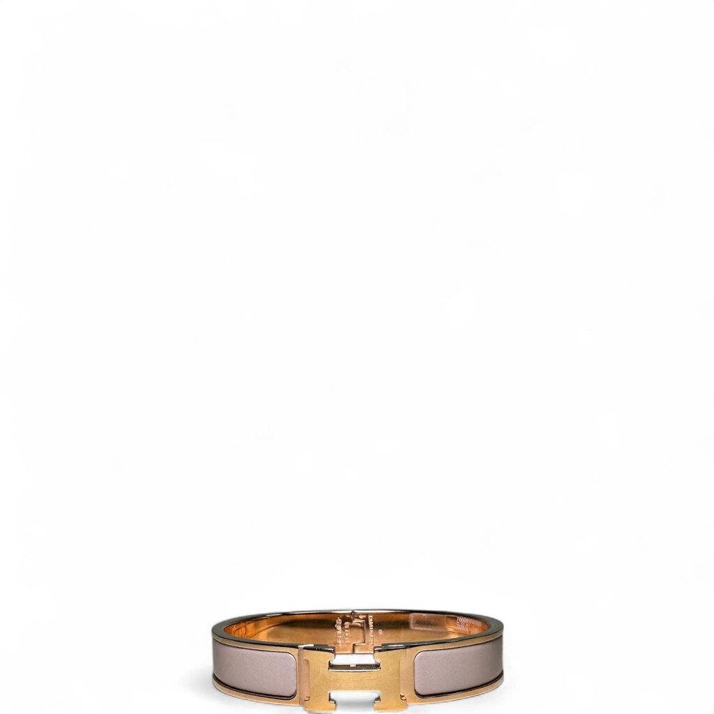 Hermes Enamel Narrow Clic Clac H Bracelet Rose Gold Marron GM