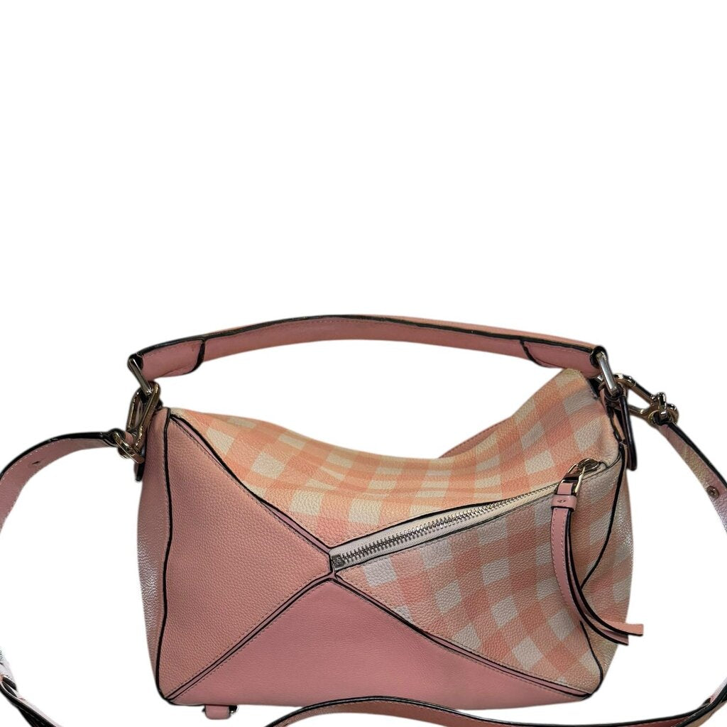 Loewe Gingham Puzzle Bag Shoulder Bag Pink Medium