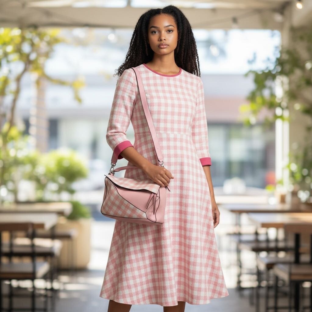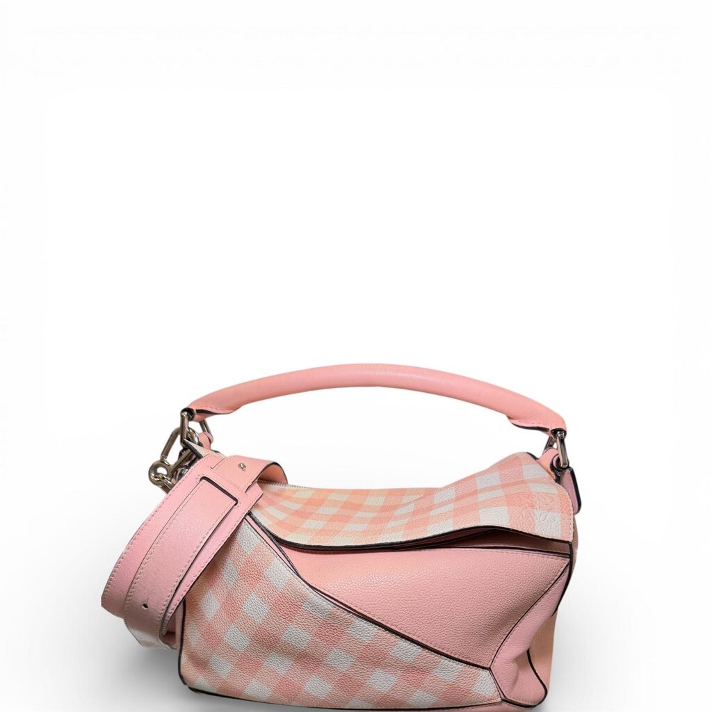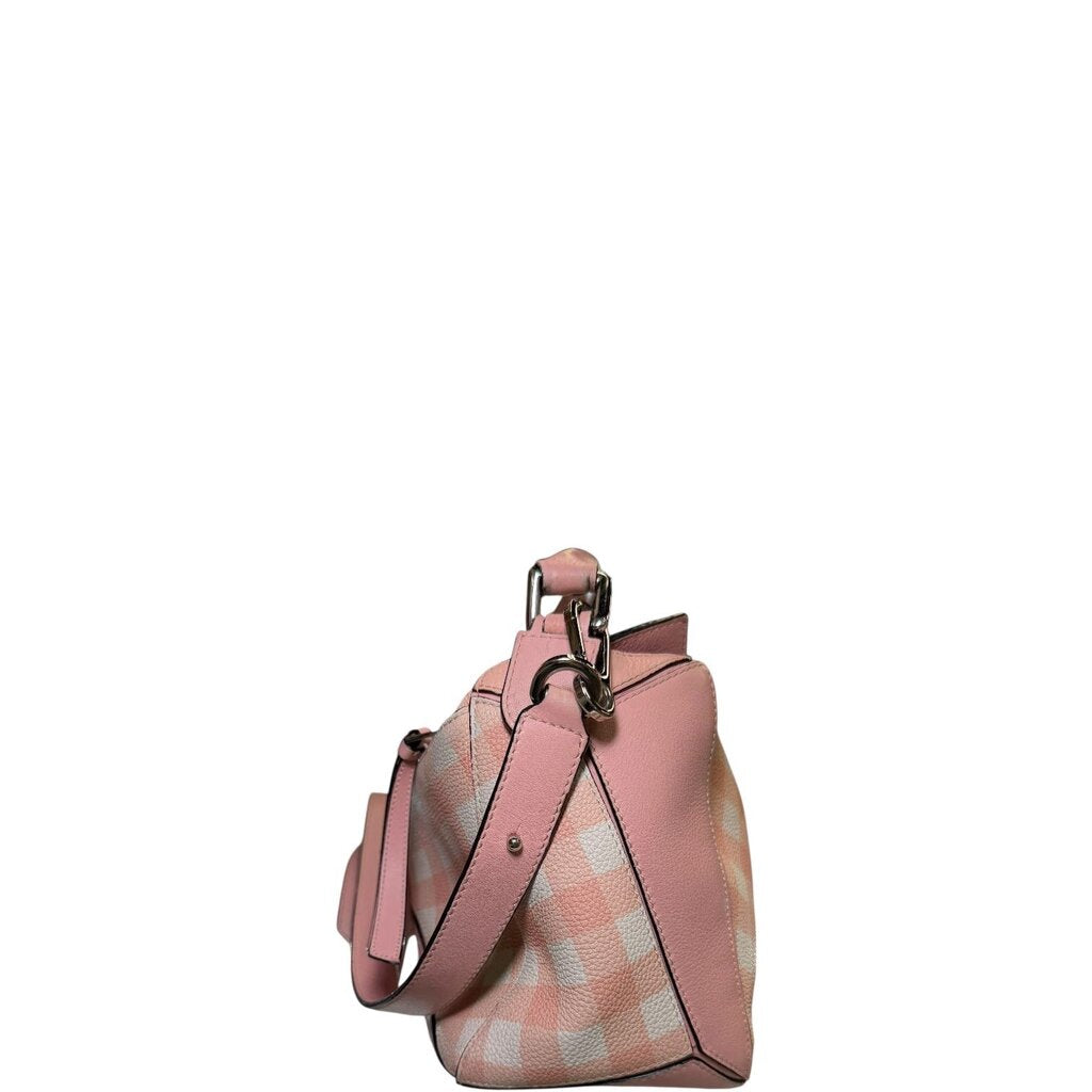 Loewe Gingham Puzzle Bag Shoulder Bag Pink Medium