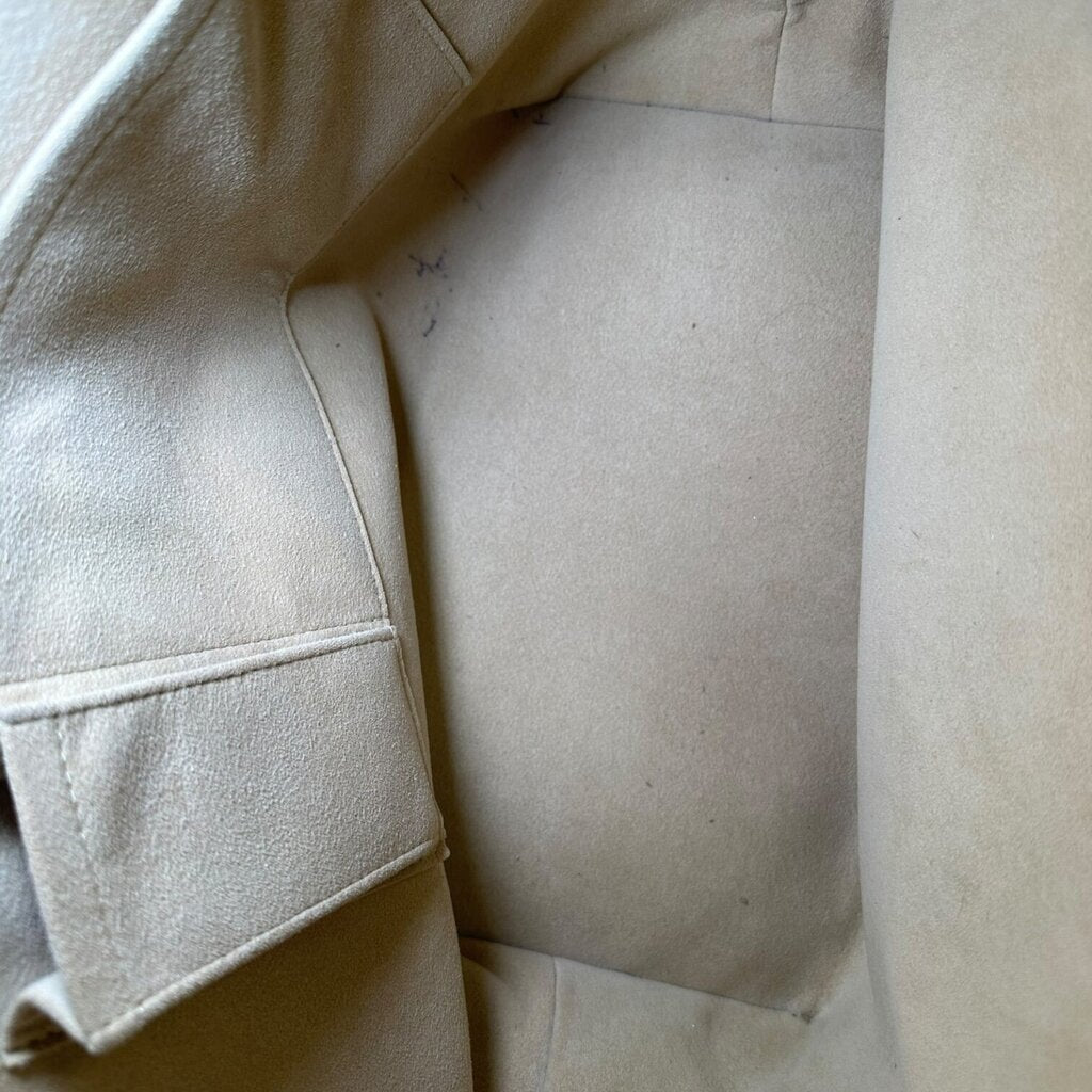 In very good condition. Some water marks on the handle and some minor canvas wear on the bottom.