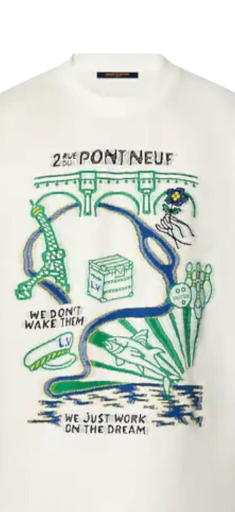 Louis Vuitton men Intarsia Rue Du Pont Neuf Design 2024 Men's Tee White X-Large
