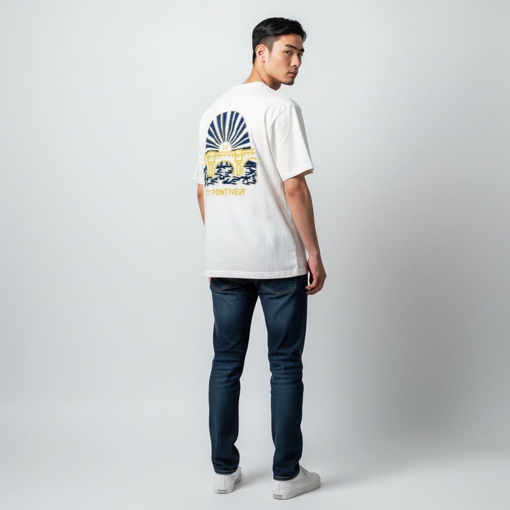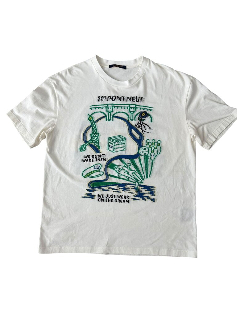 Louis Vuitton Men's Rue Du Pont Neuf Design White Tee. From 2024 collection