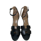 Hermes Legend Leather Wedge Sandals Black 38.5
