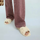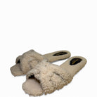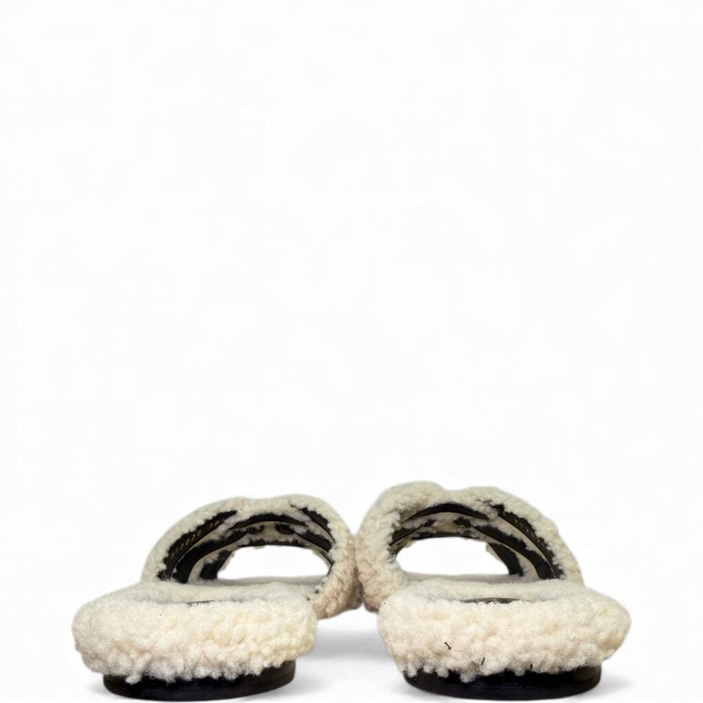 Saint Laurent YSL Tribute Shearling Slide Sandals Cream 38.5