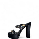 Alexander McQueen Block Heel Crystal Platform Sandals Black 39