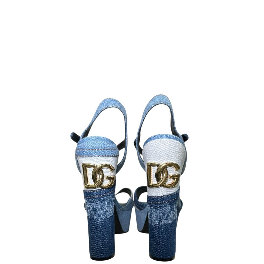 Dolce & Gabbana Keira Patchwork Platform Heels Denim 37