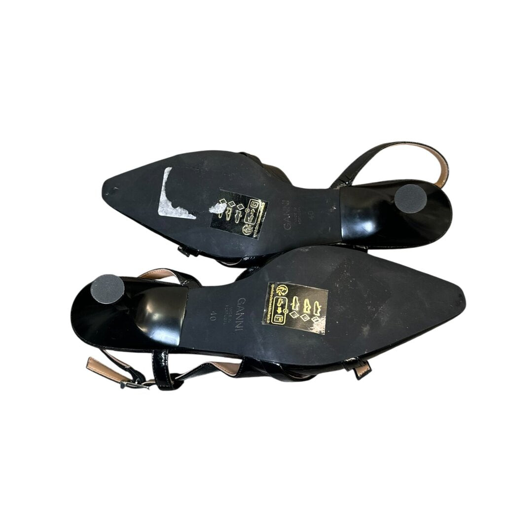 Ganni Patent Rivet Kitten Heels Size 40 In excellent condition. Light marks on the bottoms of the shoes. Does not come with the original dust bag or box.