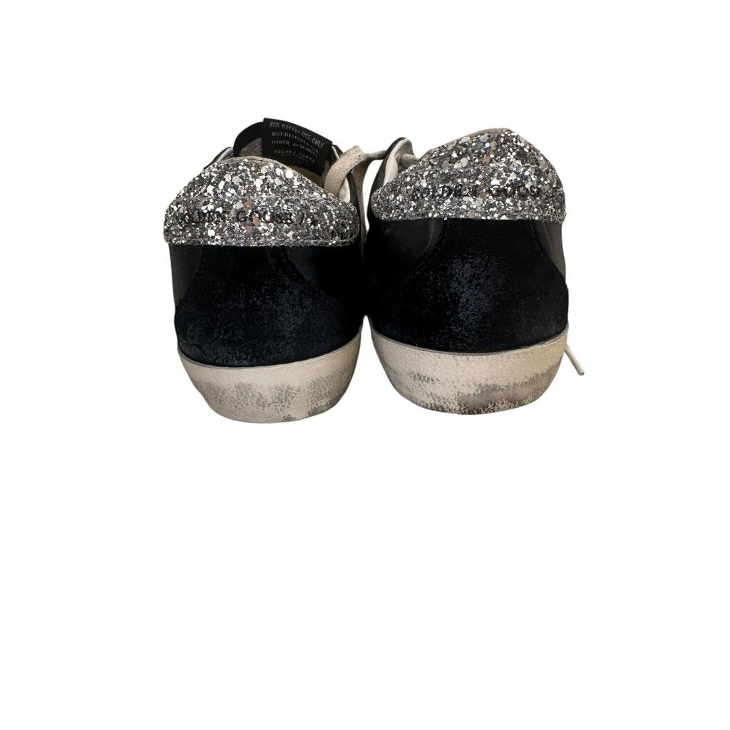 Golden Goose Super Star Black & Silver Sneakers Size: 39 In very good condition. Does not come with the original dust bag or box.