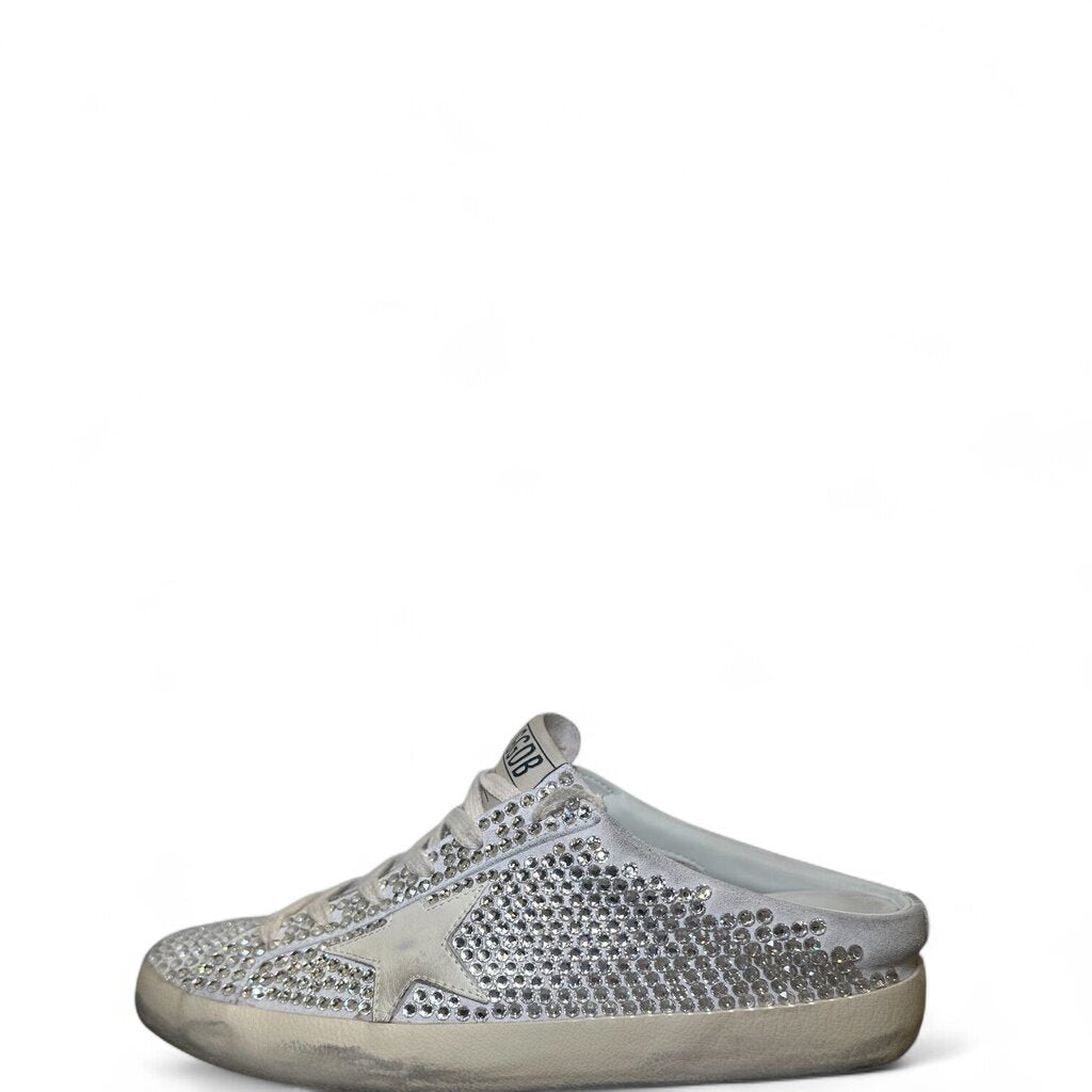 Golden Goose Swarovski Crystal Super Star Slides White 40