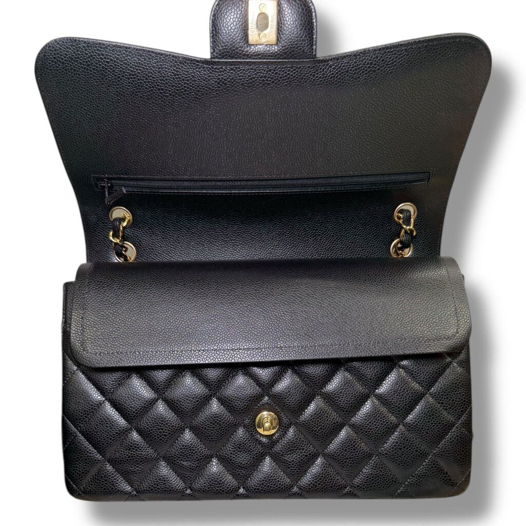 Chanel Caviar Double Flap Shoulder Bag Black Large