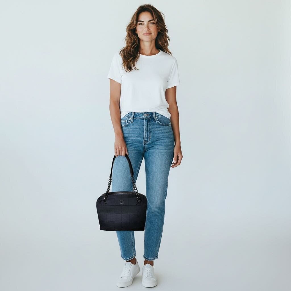 Chanel Chocolate Bar Jersey Shoulder Bag Black