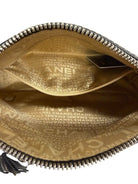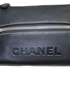 Chanel Black Pebble Leather LAX Zipper Front Pocket Handbag. Tassel Pull on Zipper Beige stitching.