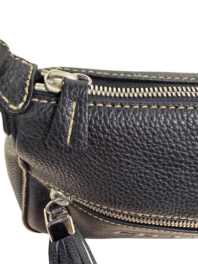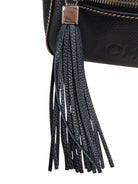 Chanel LAX Pebble Leather Zipper Front Tassle Hobo Black
