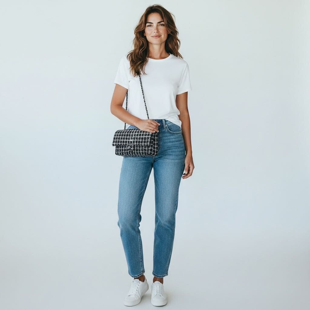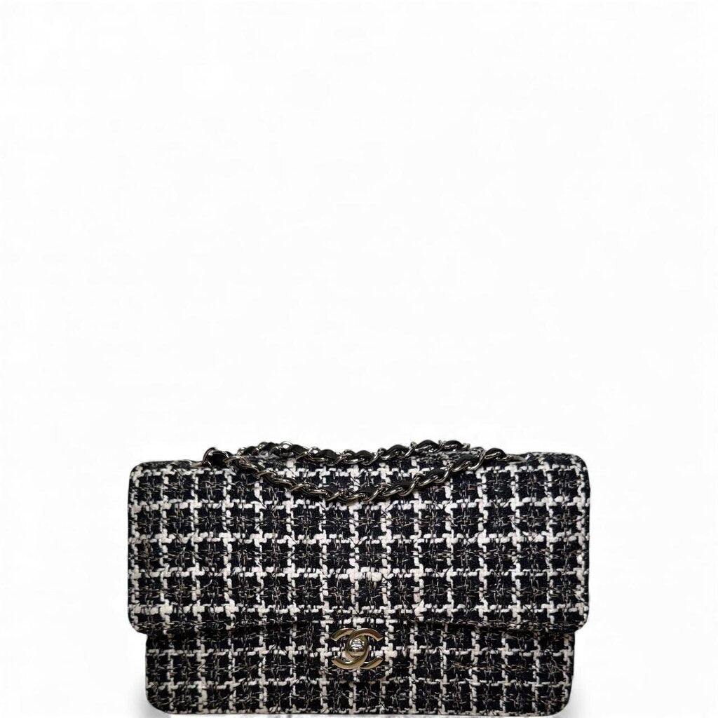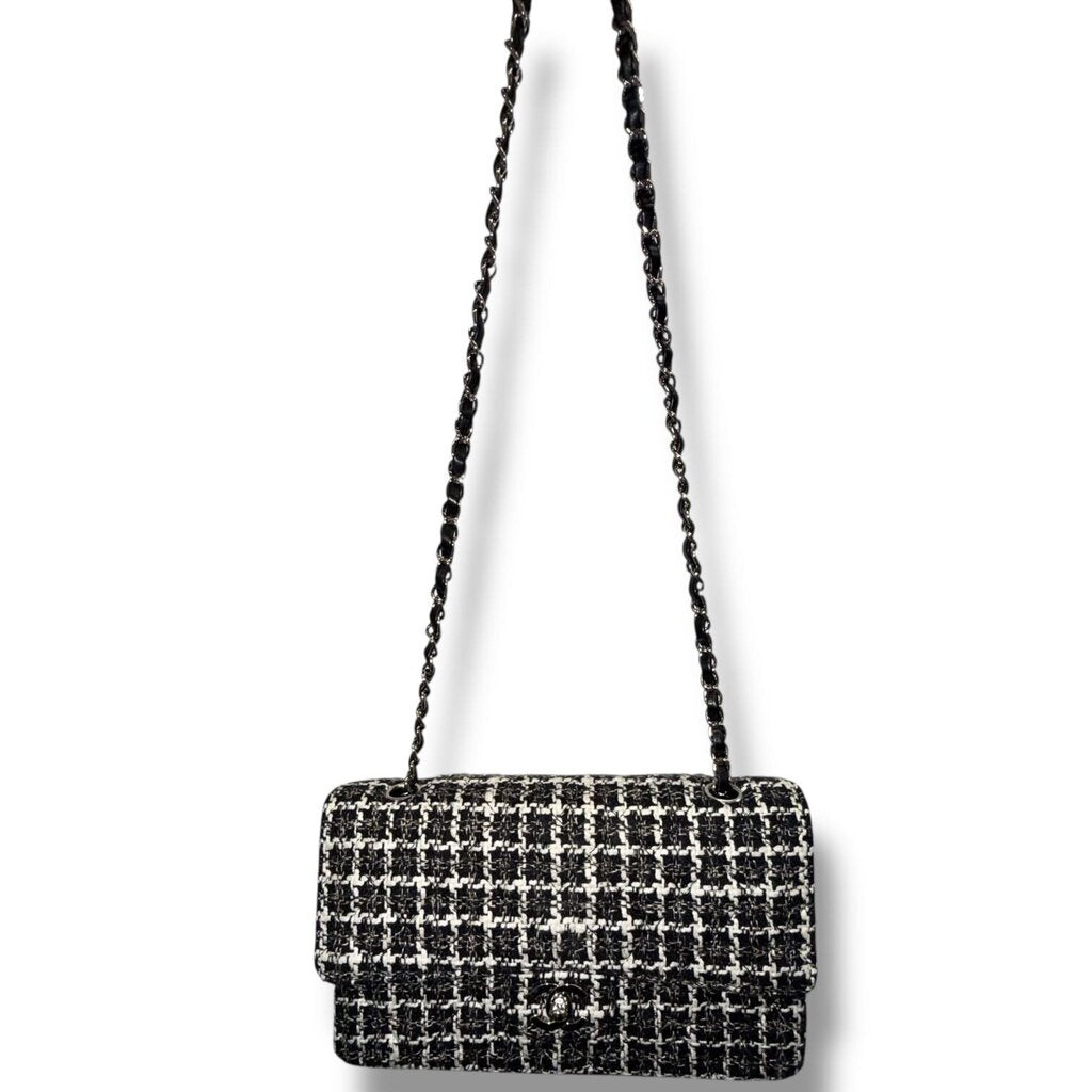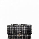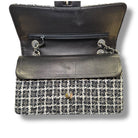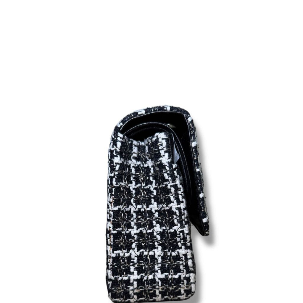 Chanel Tweed Classic Double Flap Bag Silver Hardware Black and White Medium