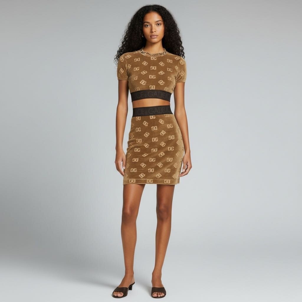 Dolce & Gabbana Monogram Logo Velvet Skirt Brown 42