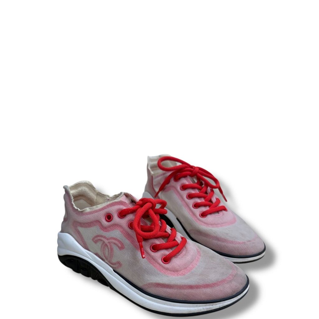 Chanel CC Lowtop Interlocking Mesh Sneakers Red 37