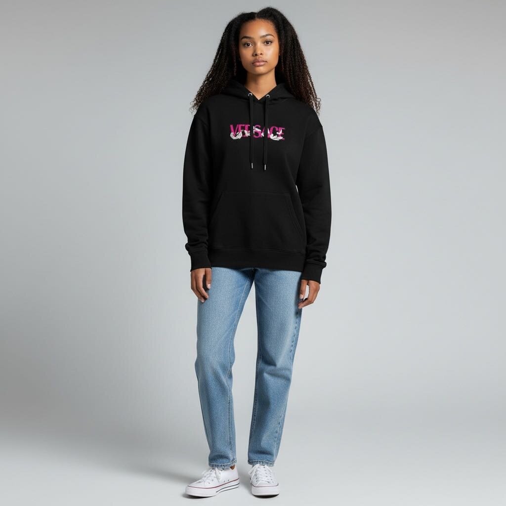 Versace Logo Baroque Hoodie Black XLarge