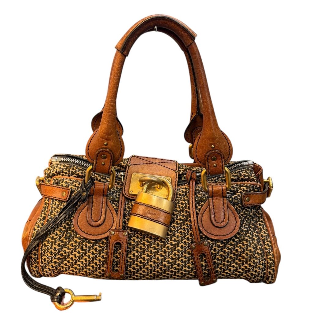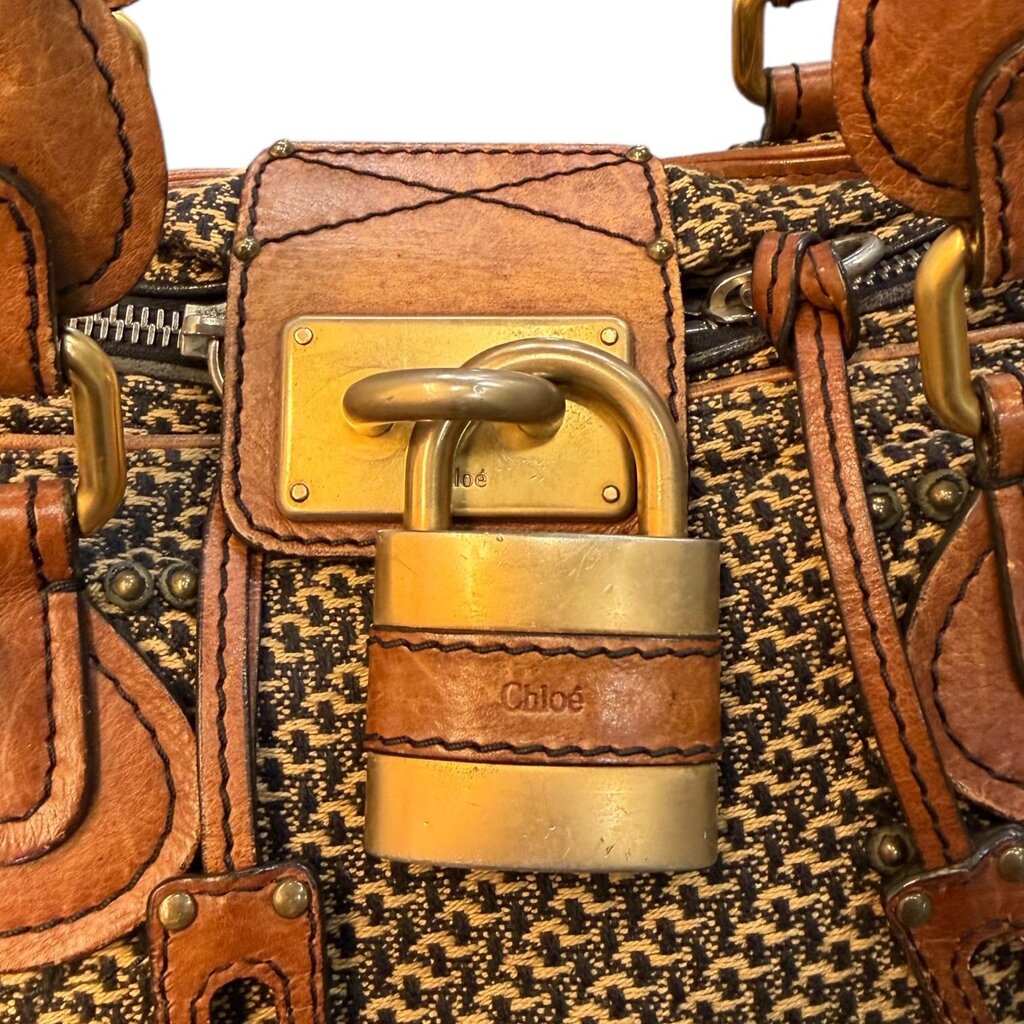 Chloe Paddington Tweed Shoulder Bag Brown Small