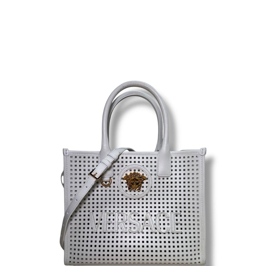 Versace La Medusa Grained Calfskin Crossbody Bag Pink Small