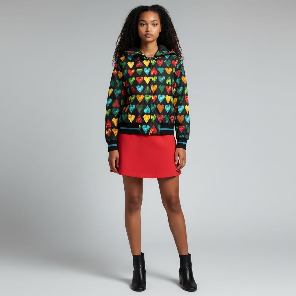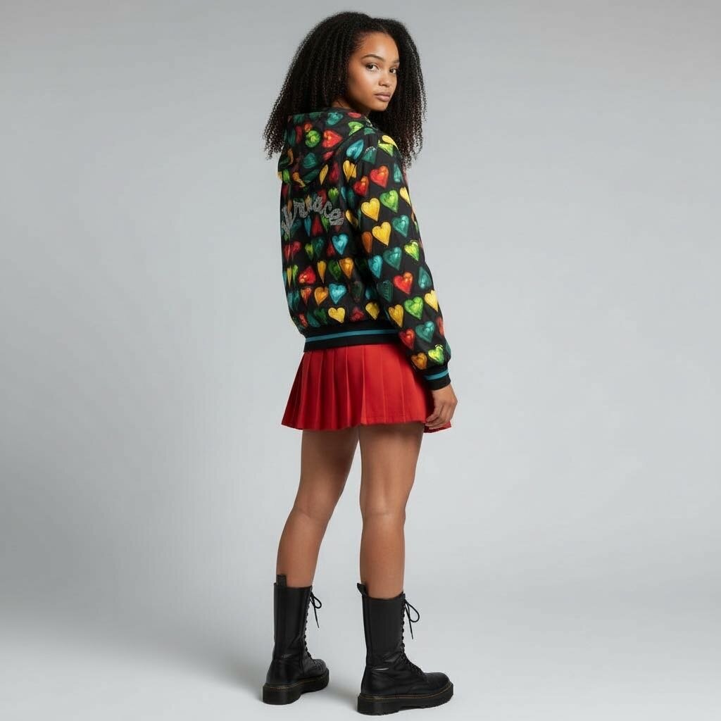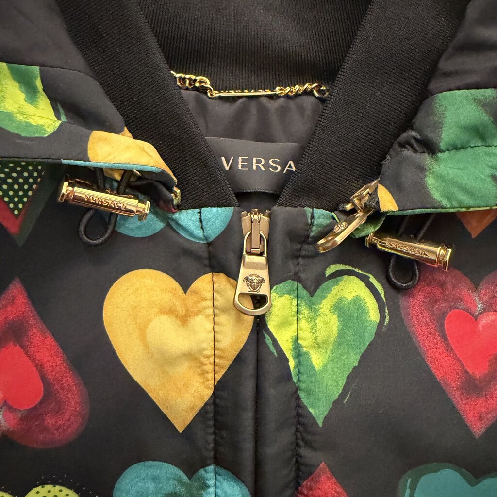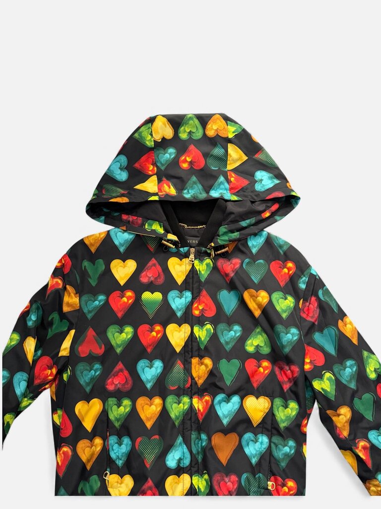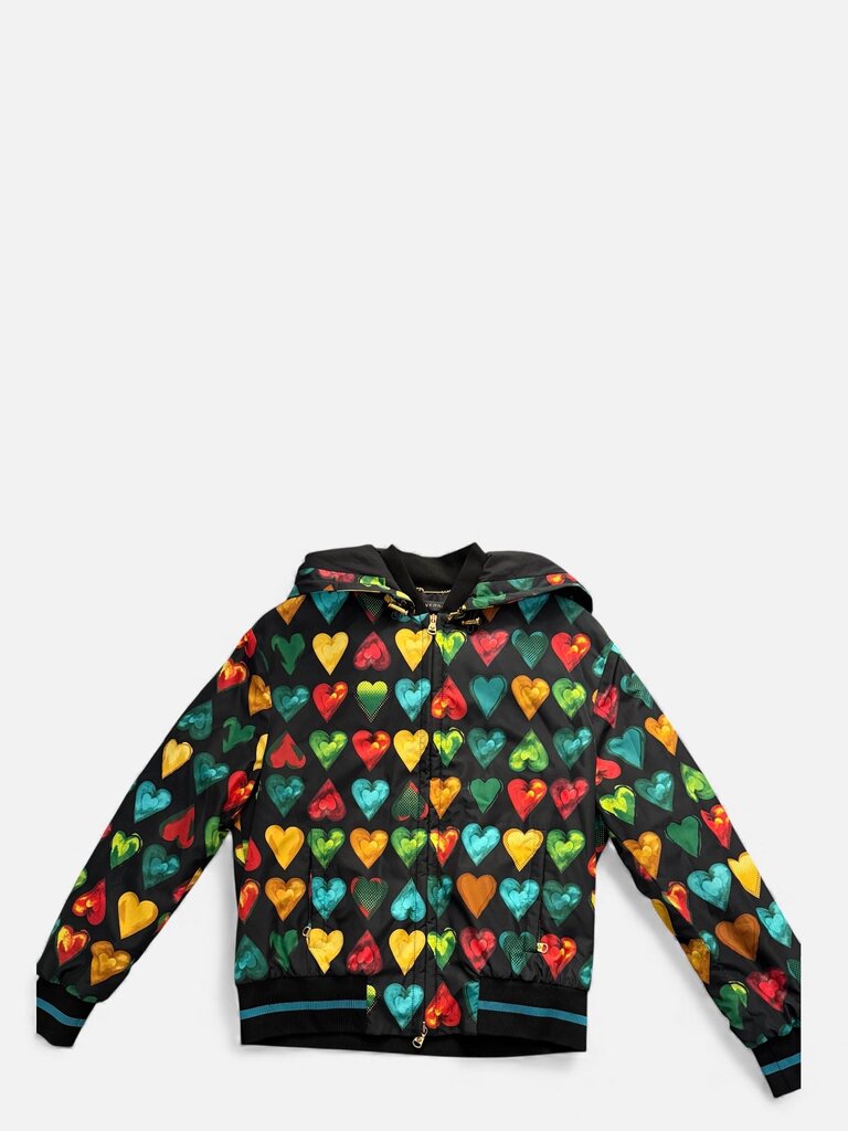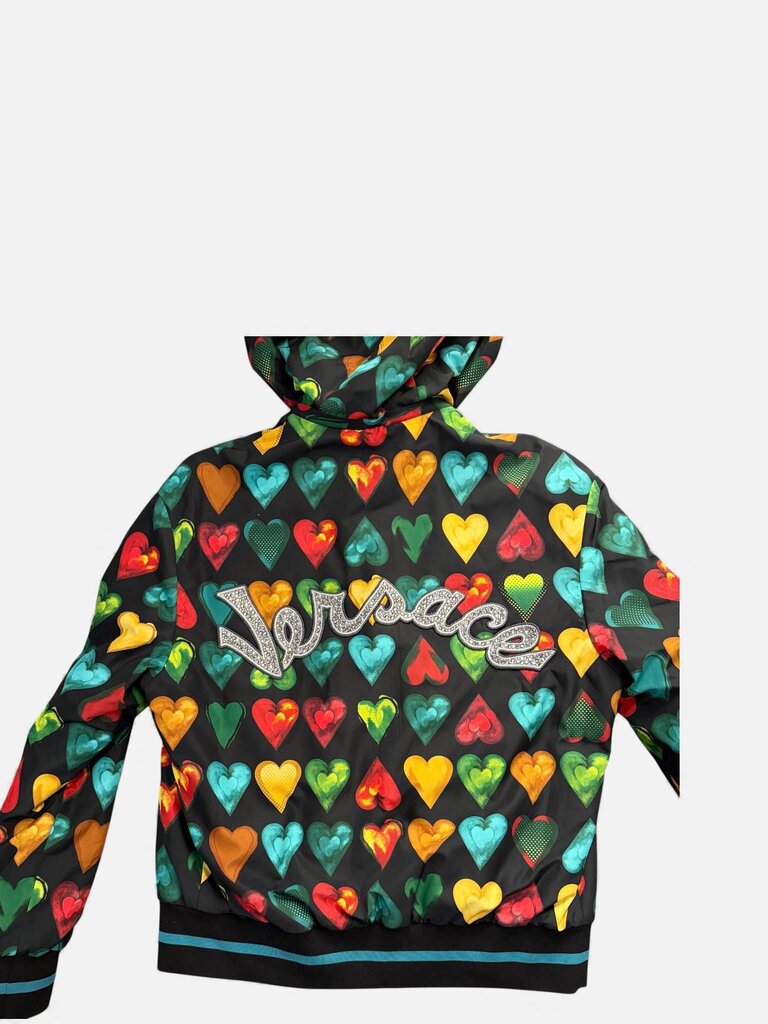 Versace Front Zip Multi Color Heart Hoodie Jacket Black 36 (XSmall)