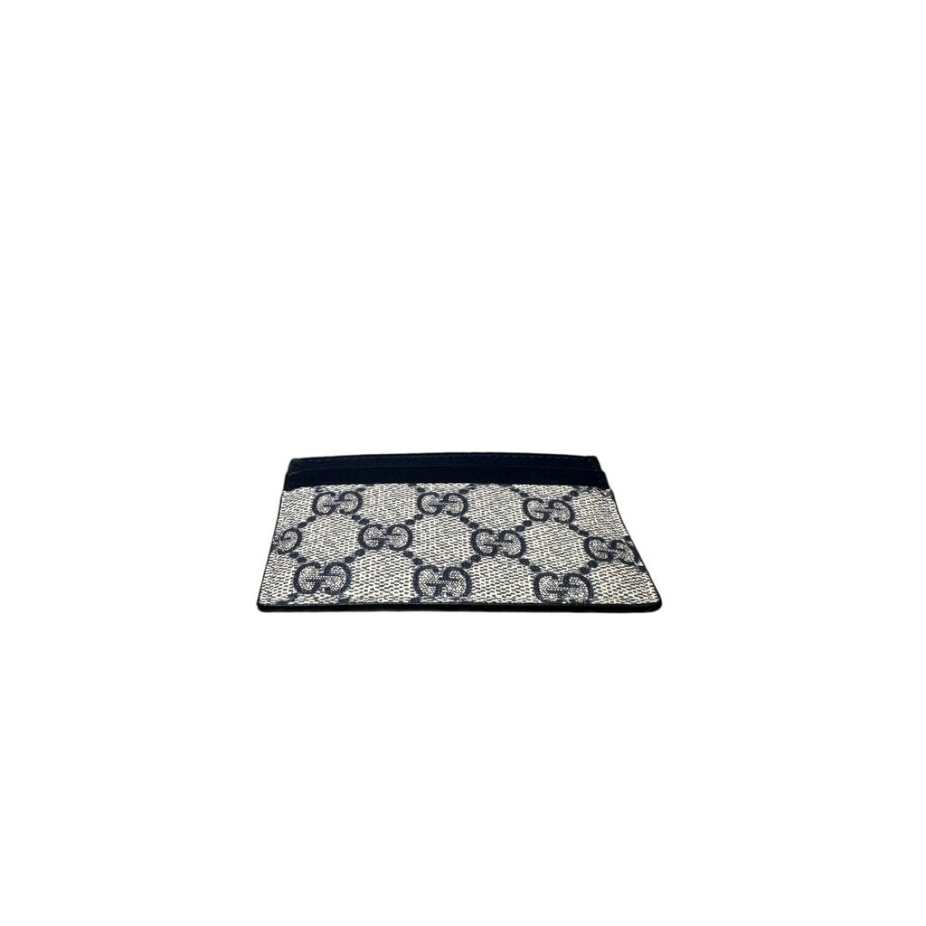 Gucci GG Card Holder Navy Supreme Wallet Date Code: 233166 .525040 Dimensions: Base length: 4 in Height: 2.75 in In excellent condition. Does not come with the original dust bag or box.