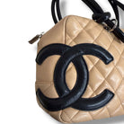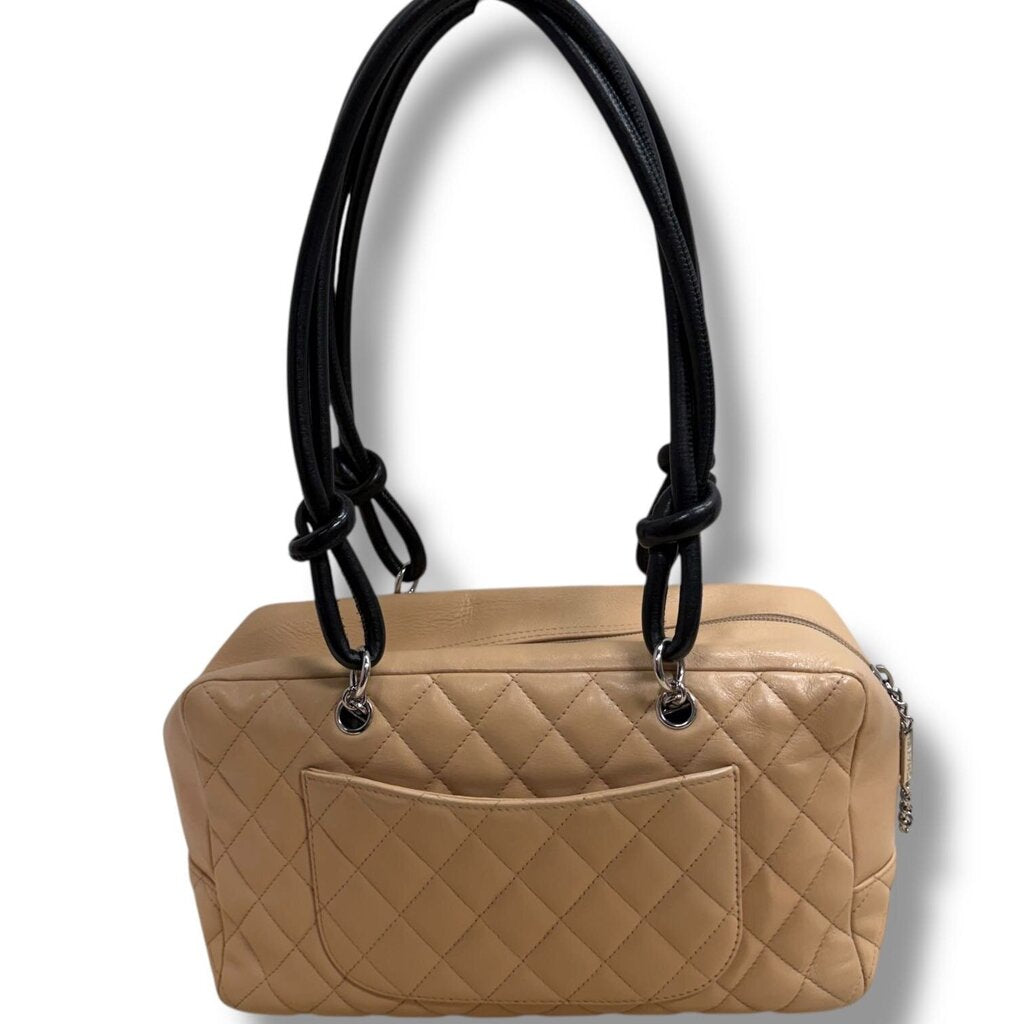Chanel Ligne Cambon Bowler Quilted Brown with Black Leather Trim Shoulder Bag