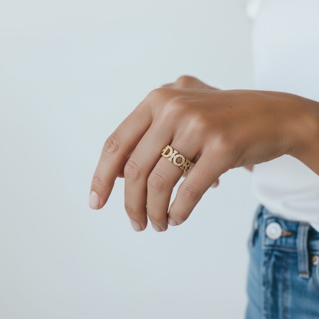 Christian Dior DiorRevolution Gold Finish Crystal Ring