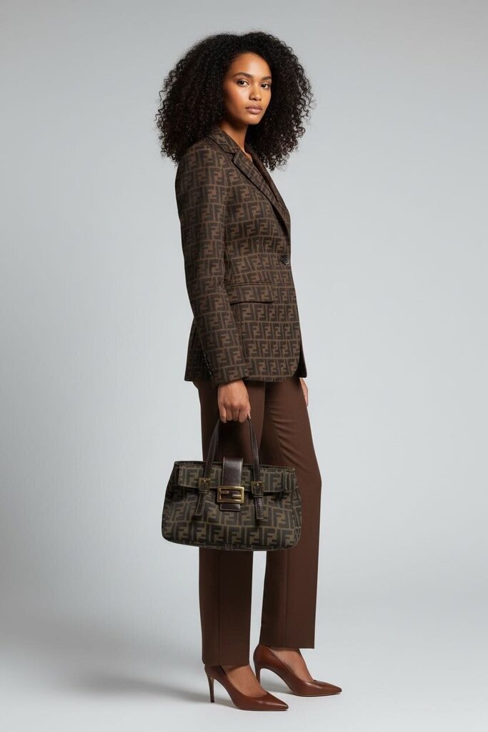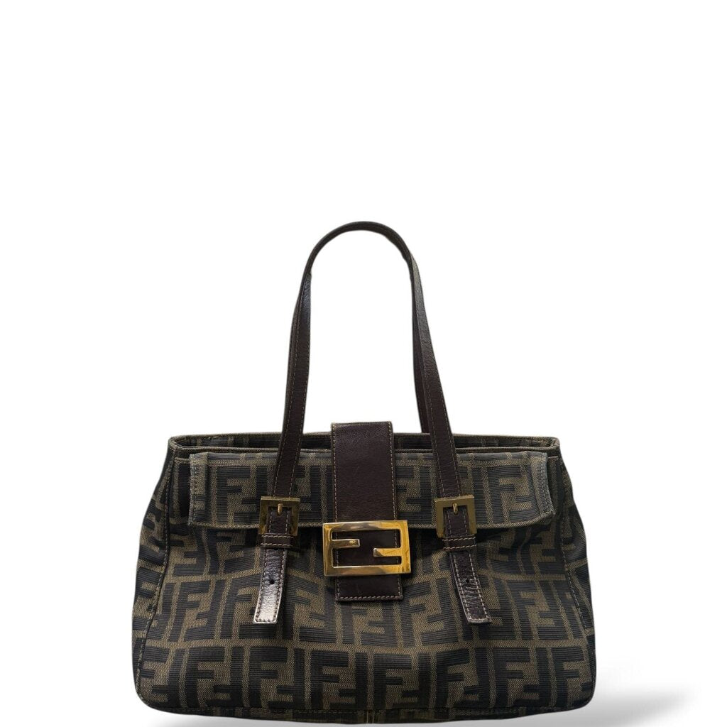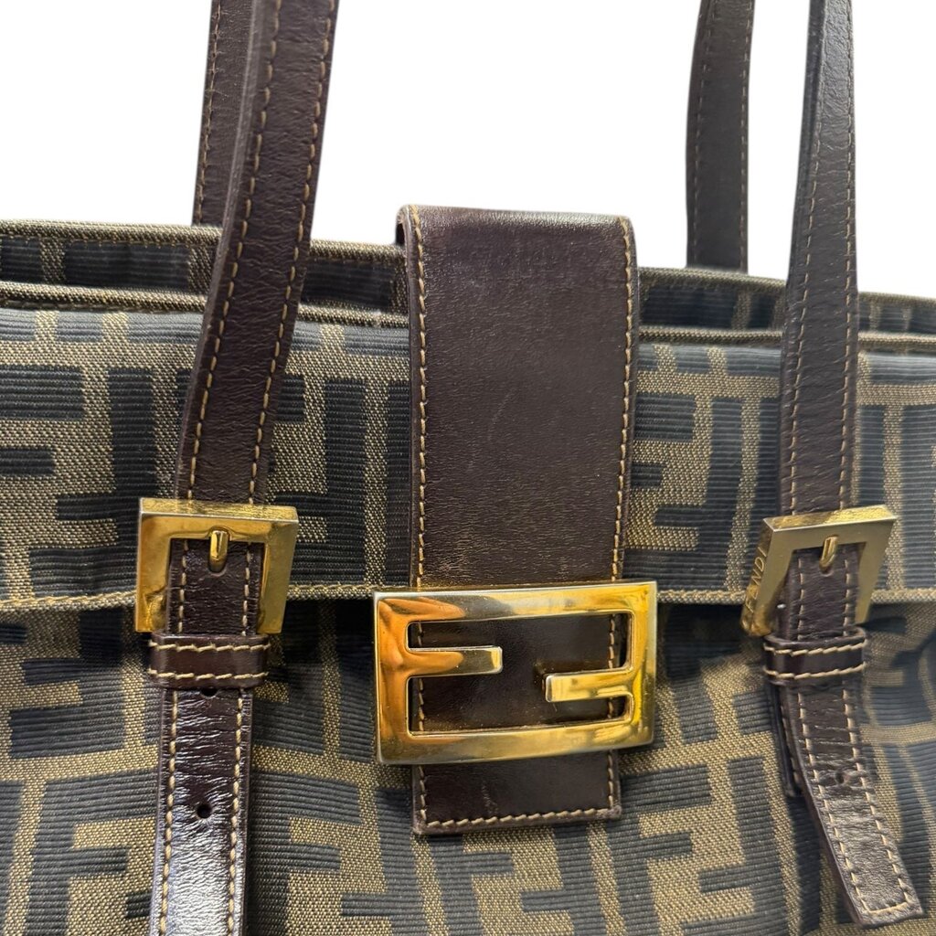 Fendi Canvas Zucca Top Handle Bag Brown