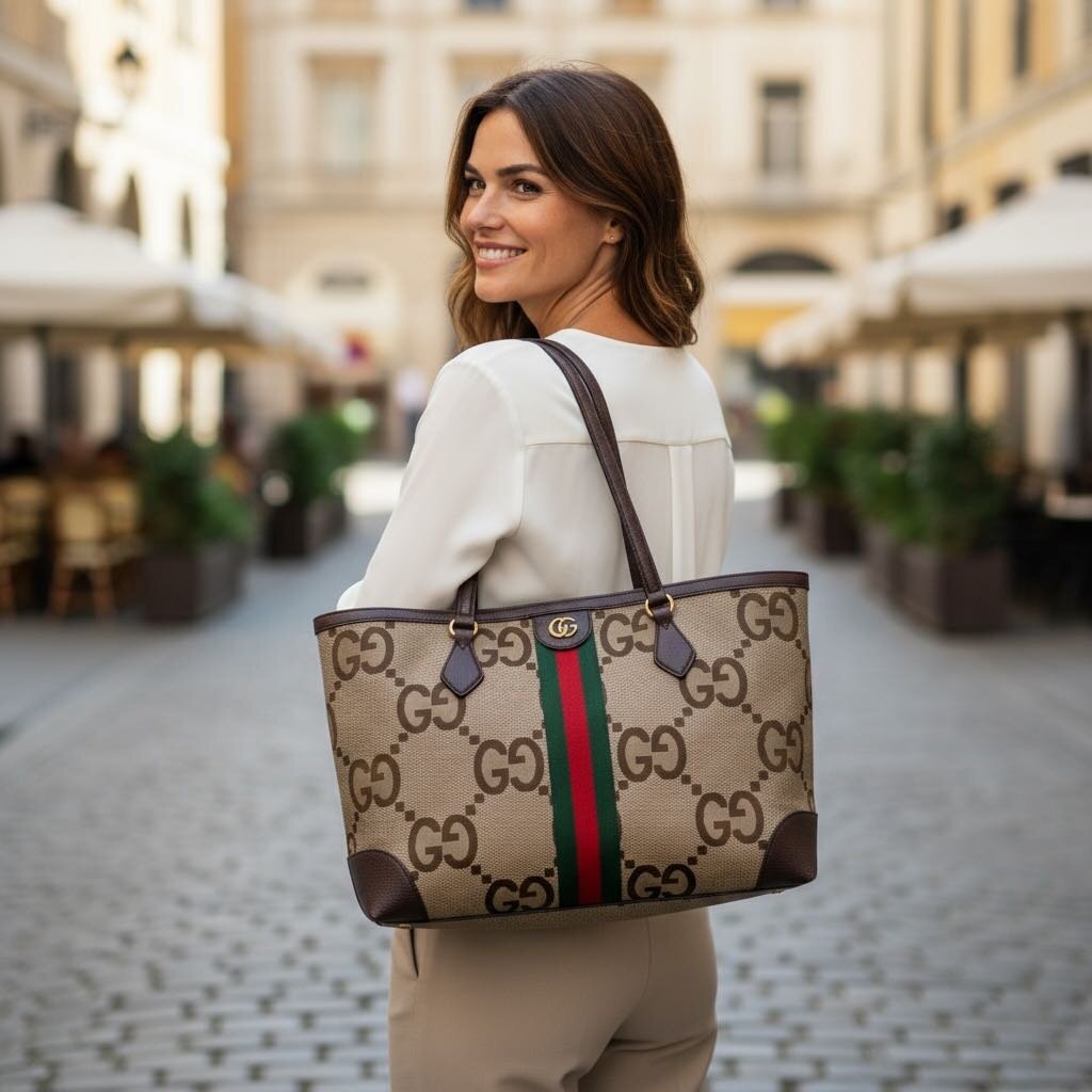 Gucci Jumbo GG Textured Calfskin Ophidia Tote Monogram Medium