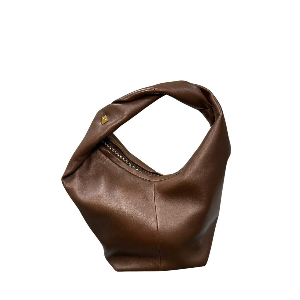 Valentino Roman Stud Hobo Shoulder Bag Brown Large